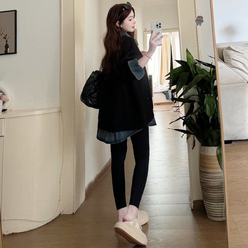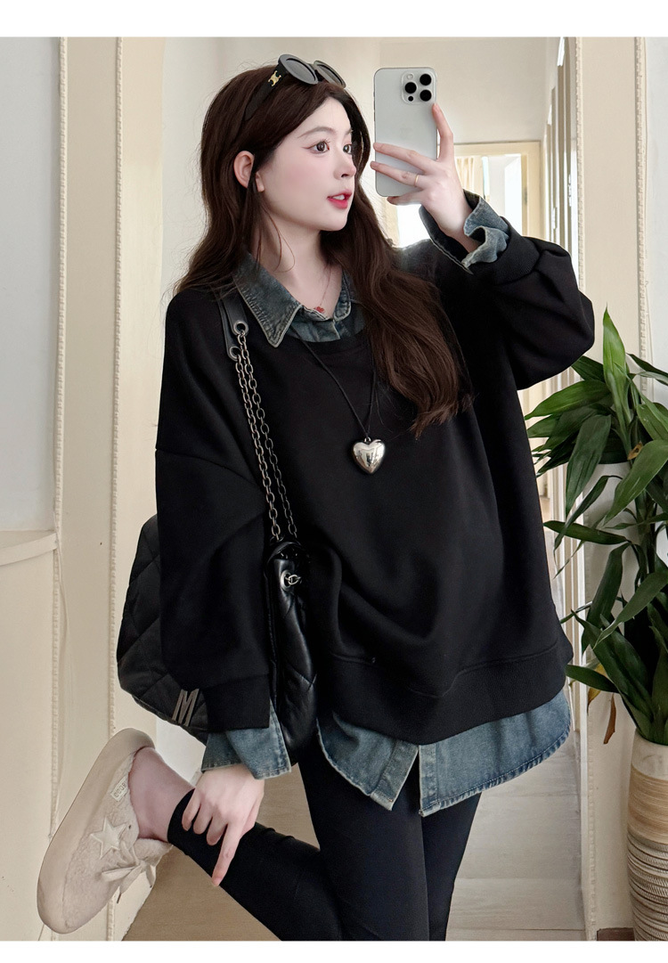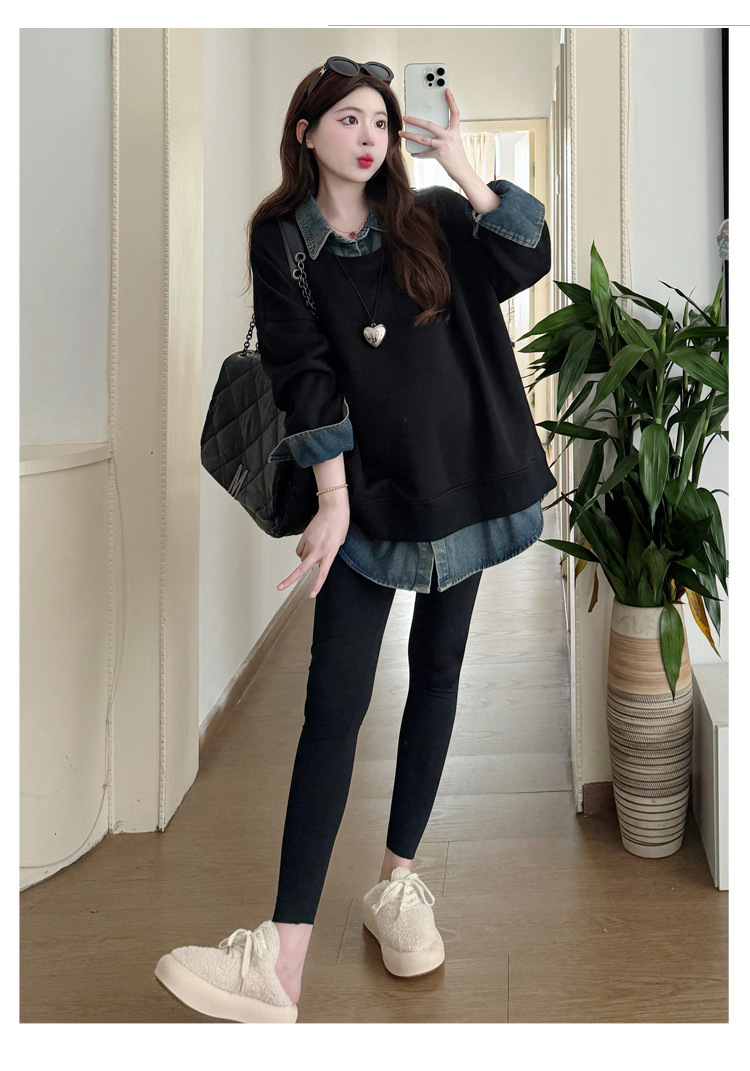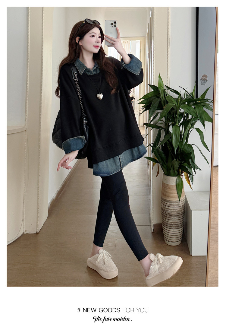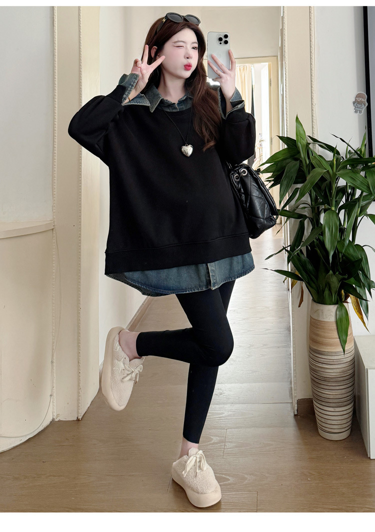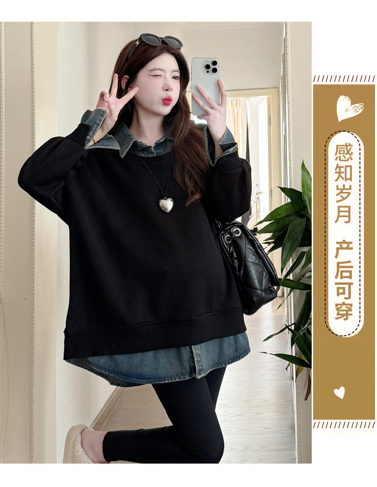 2024 новый осенний и зимний сращивание беременных женщин поддельные две рубашки больших размеров воротник для беременных толстый