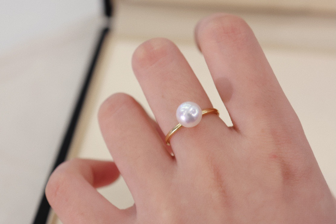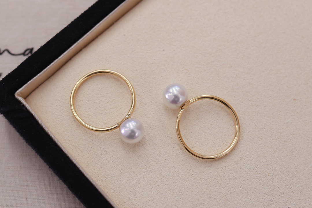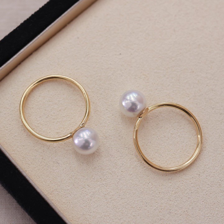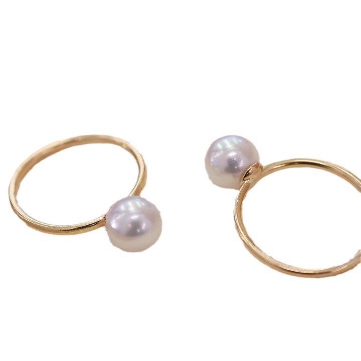 Аксессуары из золота 18 карат, простая легкая версия, жемчужное кольцо в стиле ins, изображение 18 карат с бусинами 7-8 мм без бусин