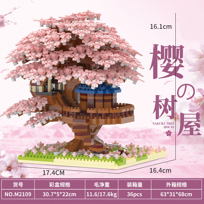 Домик на дереве Сакура, совместимый с домиком персикового цвета, высокий строительный блок, сборная модель, развивающие игрушки из микрочастиц, оптовая продажа