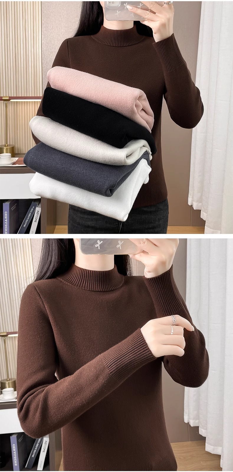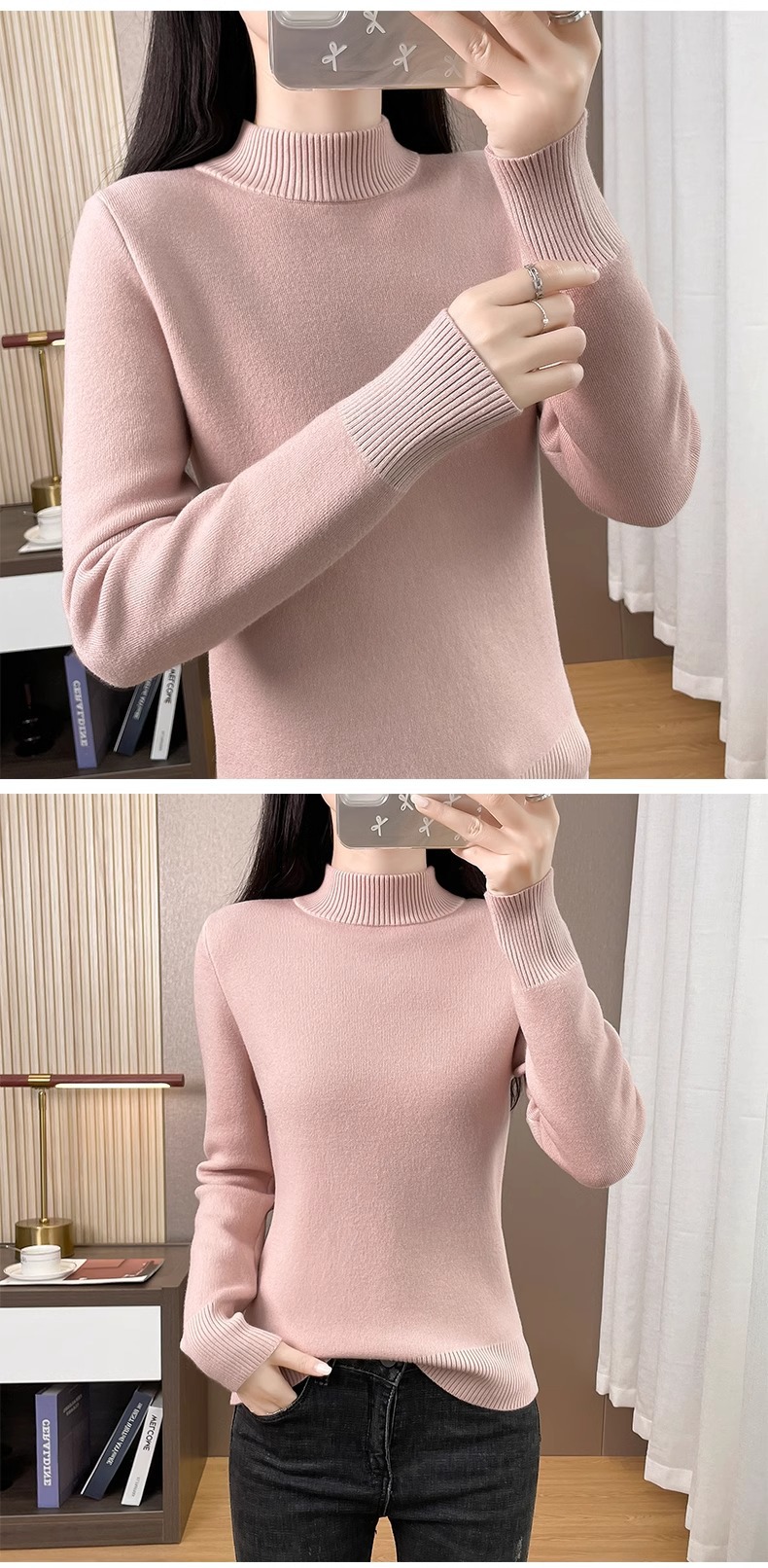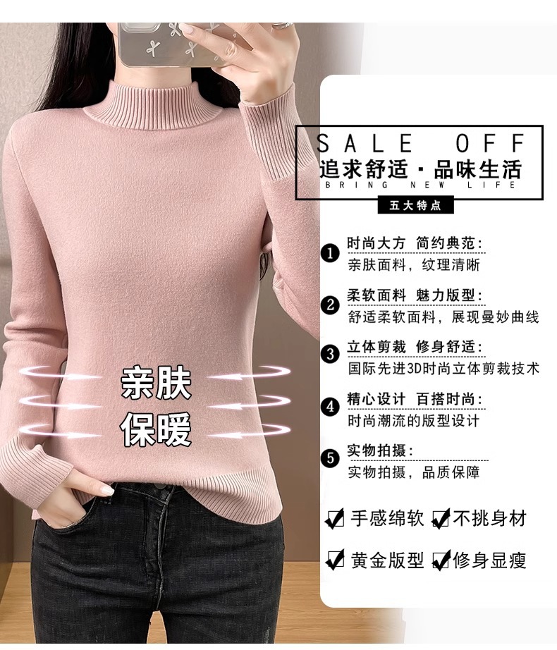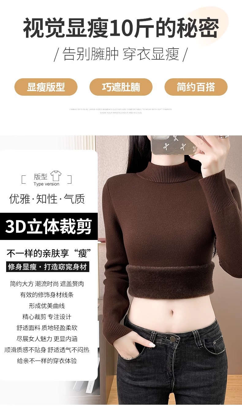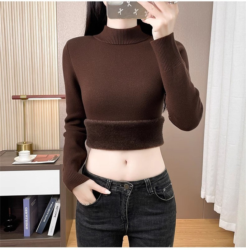 Плюшевый свитер женский осенний и зимний толстый бархатный трикотажный нижний свитер с большим размером полувысокого воротника теплый топ