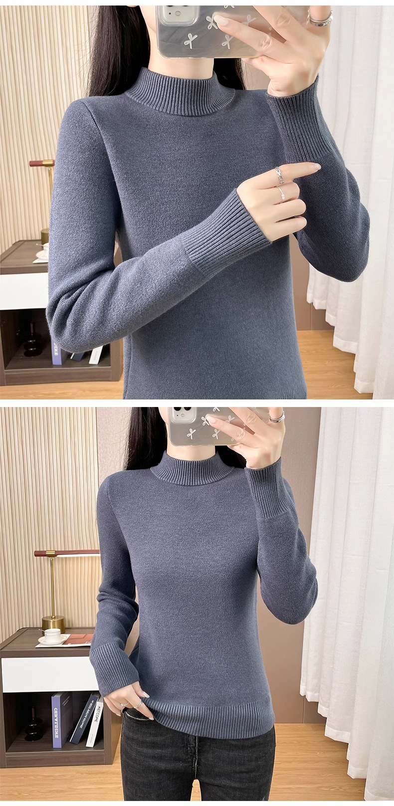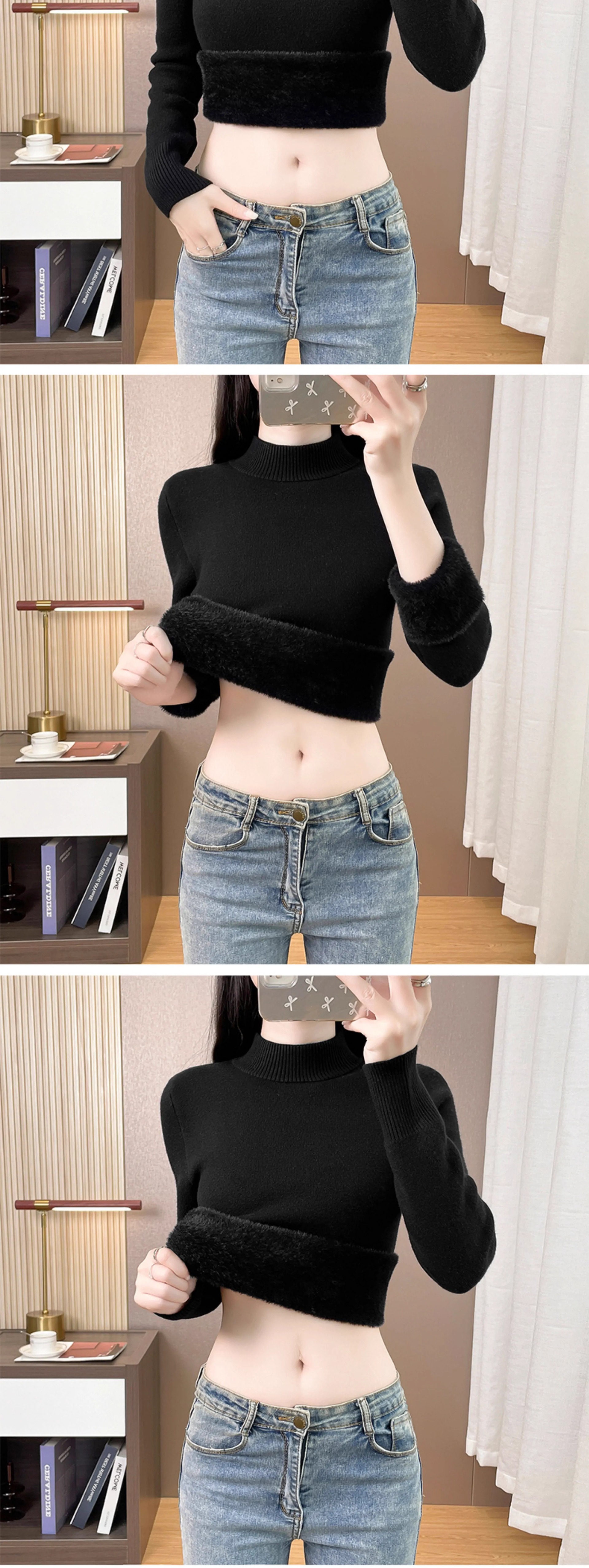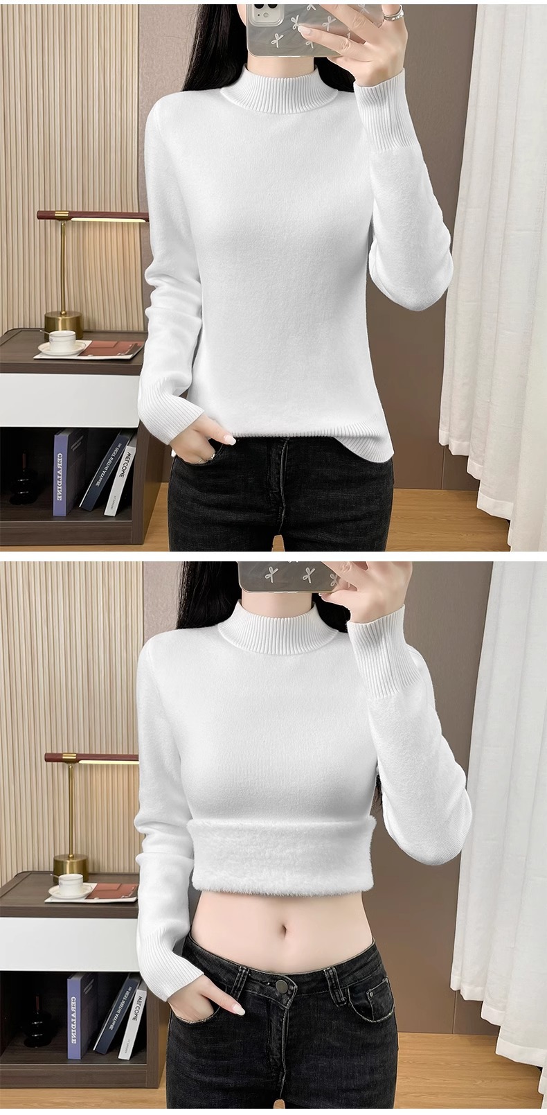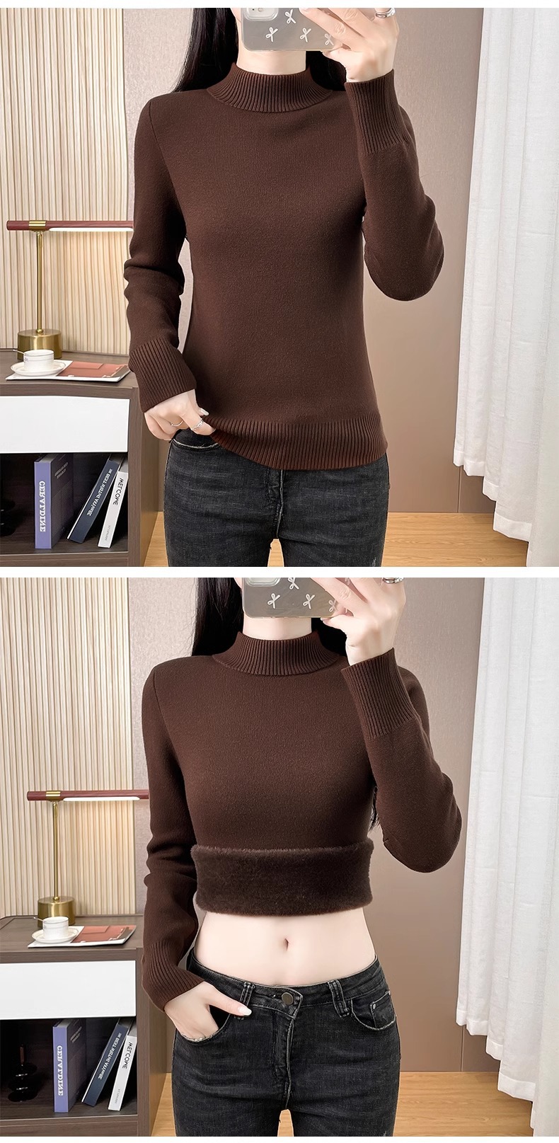 Плюшевый свитер женский осенний и зимний толстый бархатный трикотажный нижний свитер с большим размером полувысокого воротника теплый топ