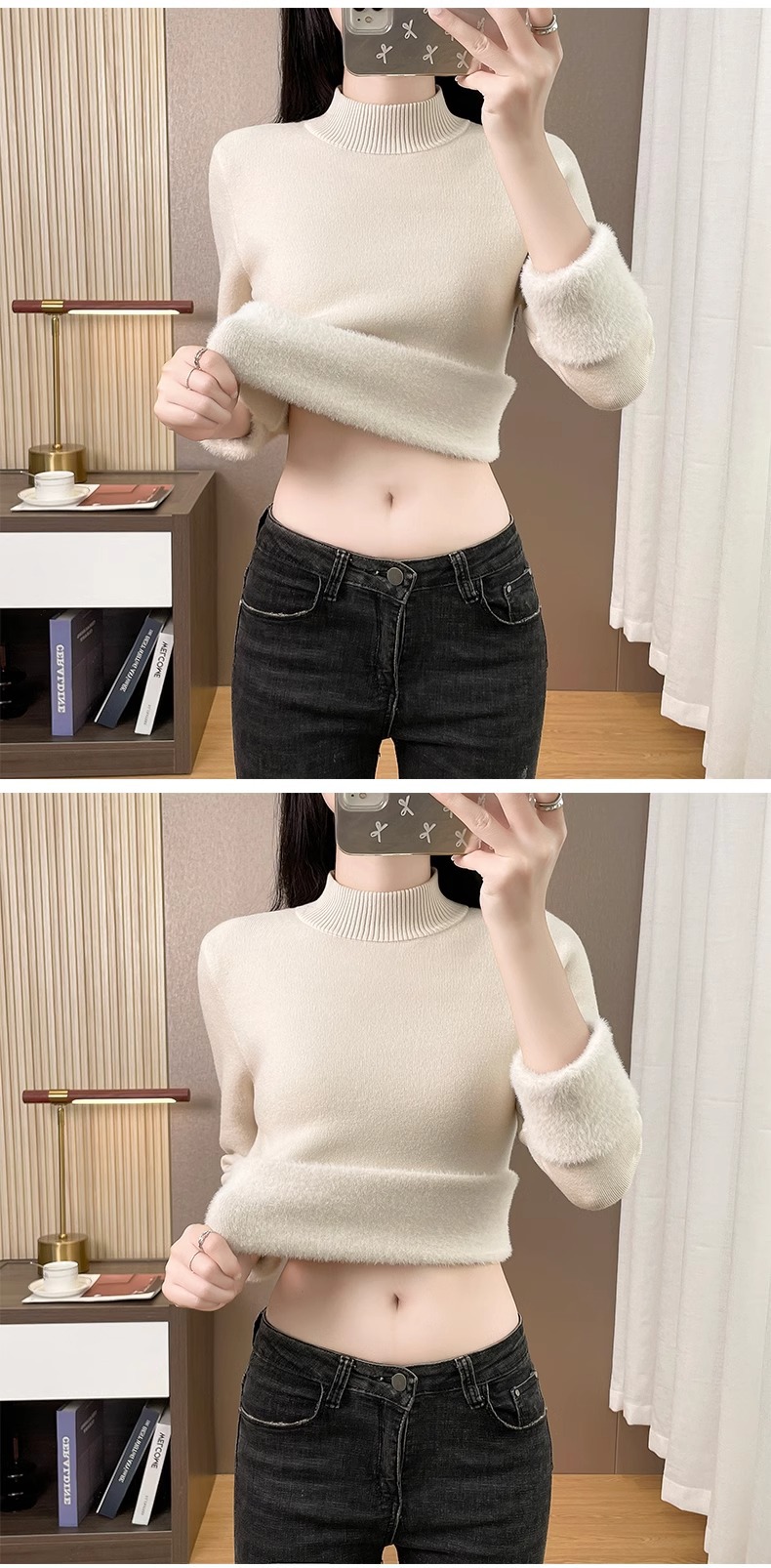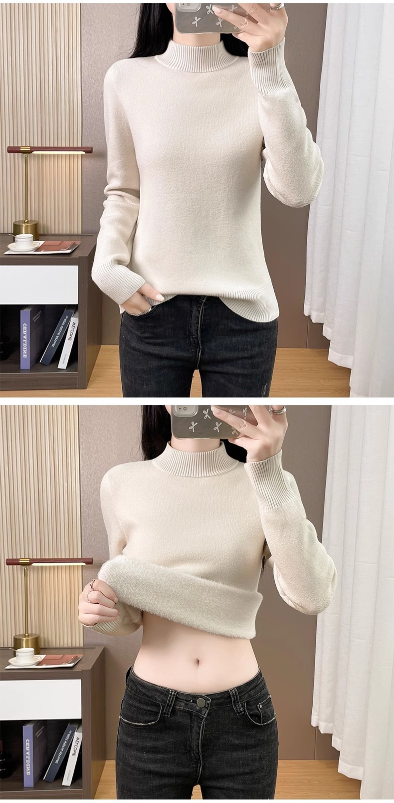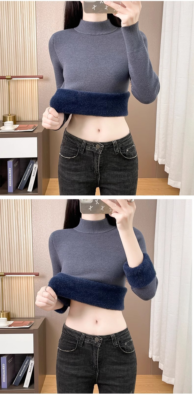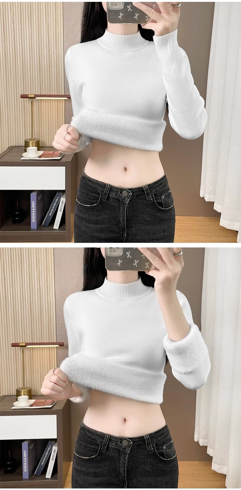 Плюшевый свитер женский осенний и зимний толстый бархатный трикотажный нижний свитер с большим размером полувысокого воротника теплый топ