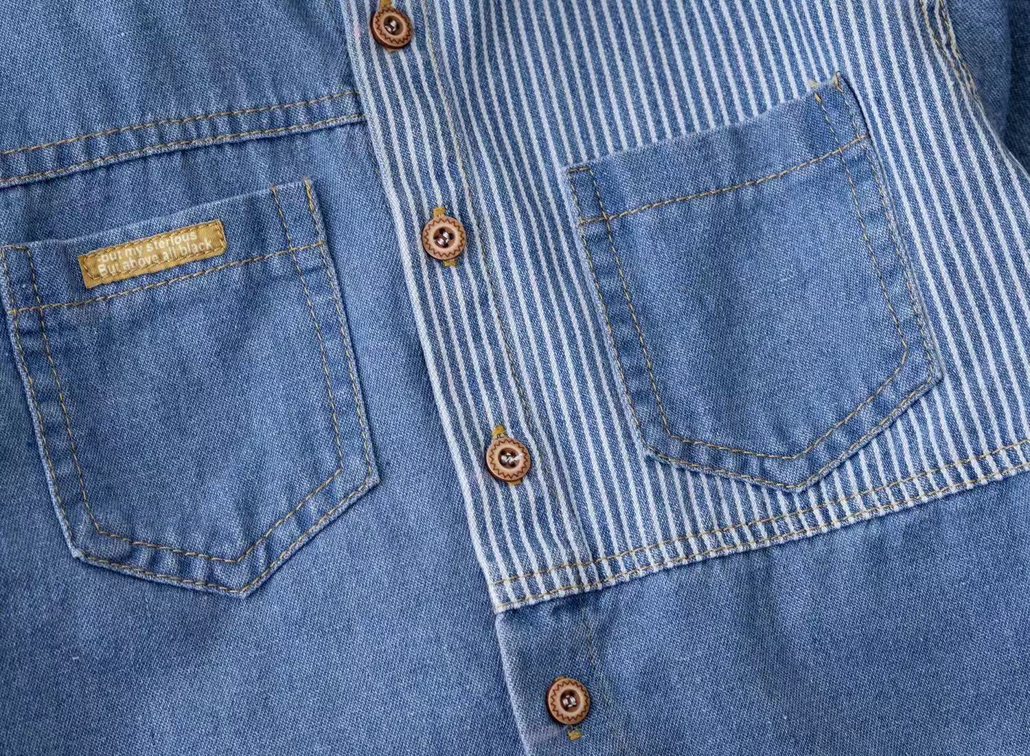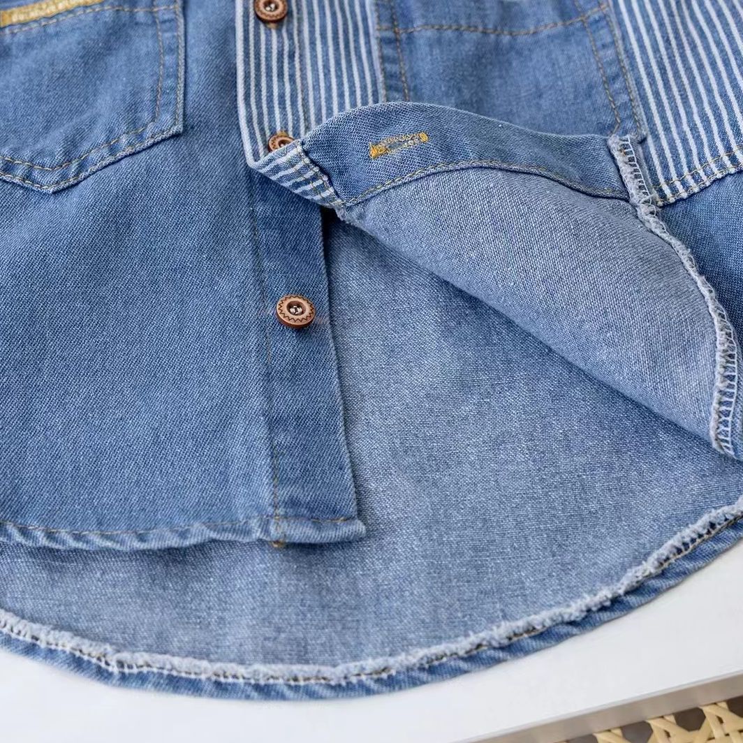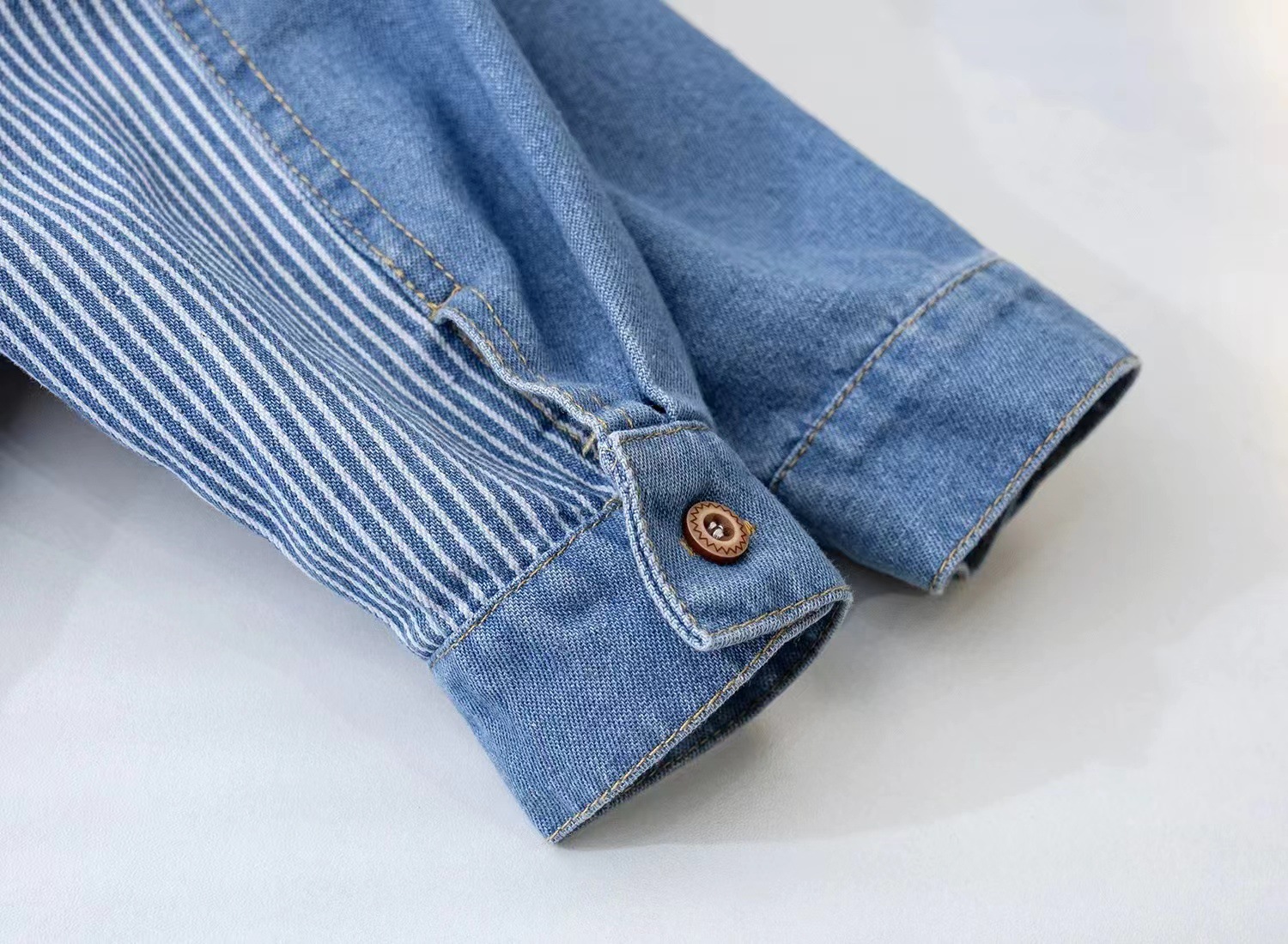 Новая коллекция 2025: Модная детская джинсовая рубашка-куртка для мальчиков в полоску и цветовых блоках, тонкая, на весну-осень