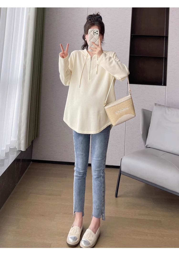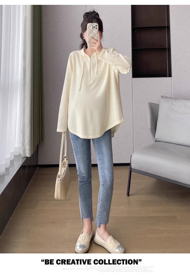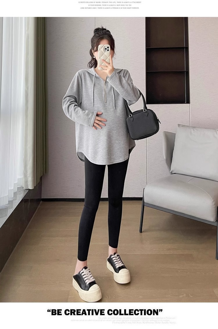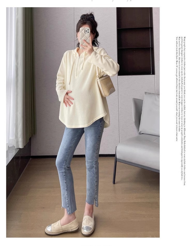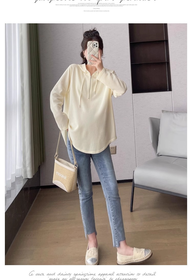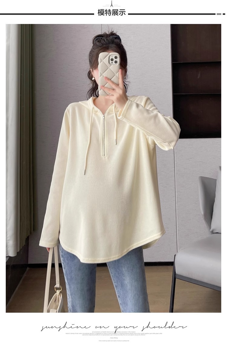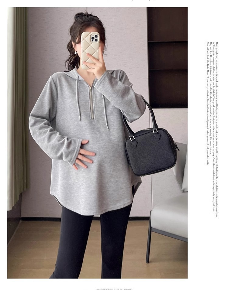 2024 весна и осень одежда для беременных новая мода корейская версия повседневная сладкая свободная футболка с капюшоном