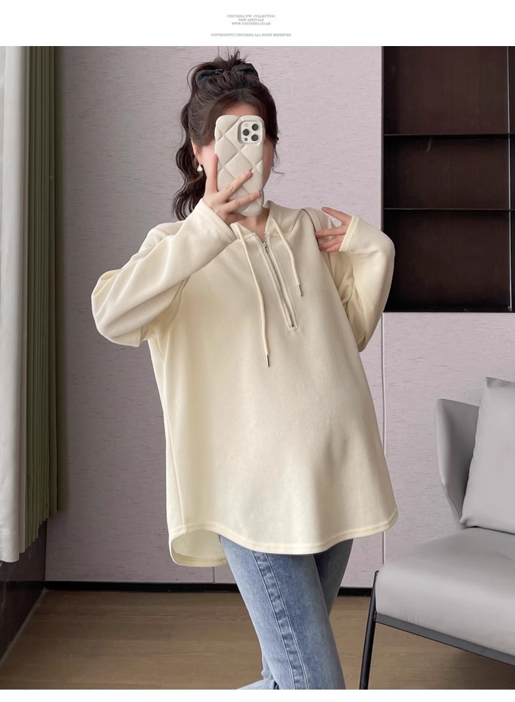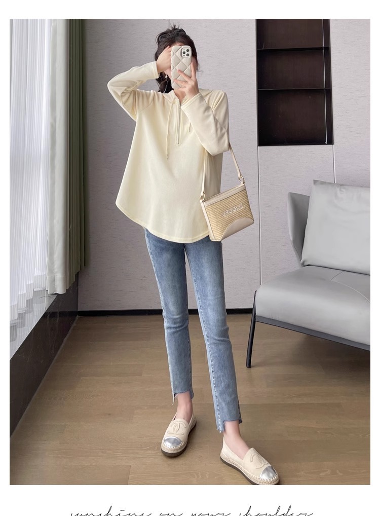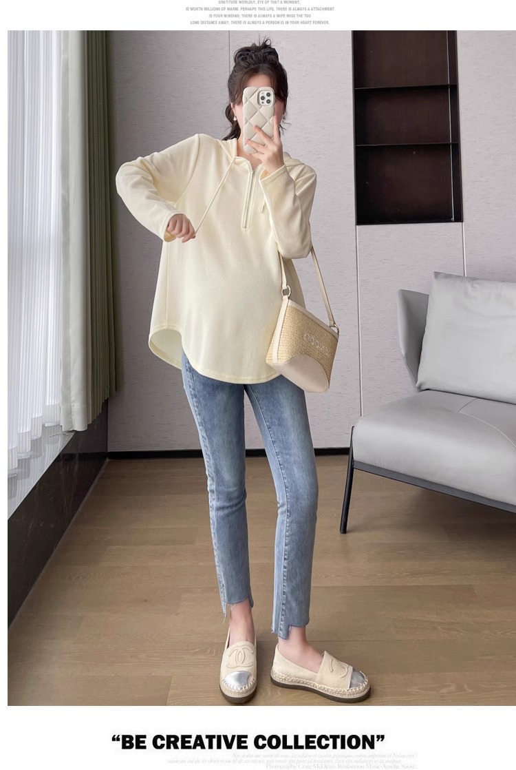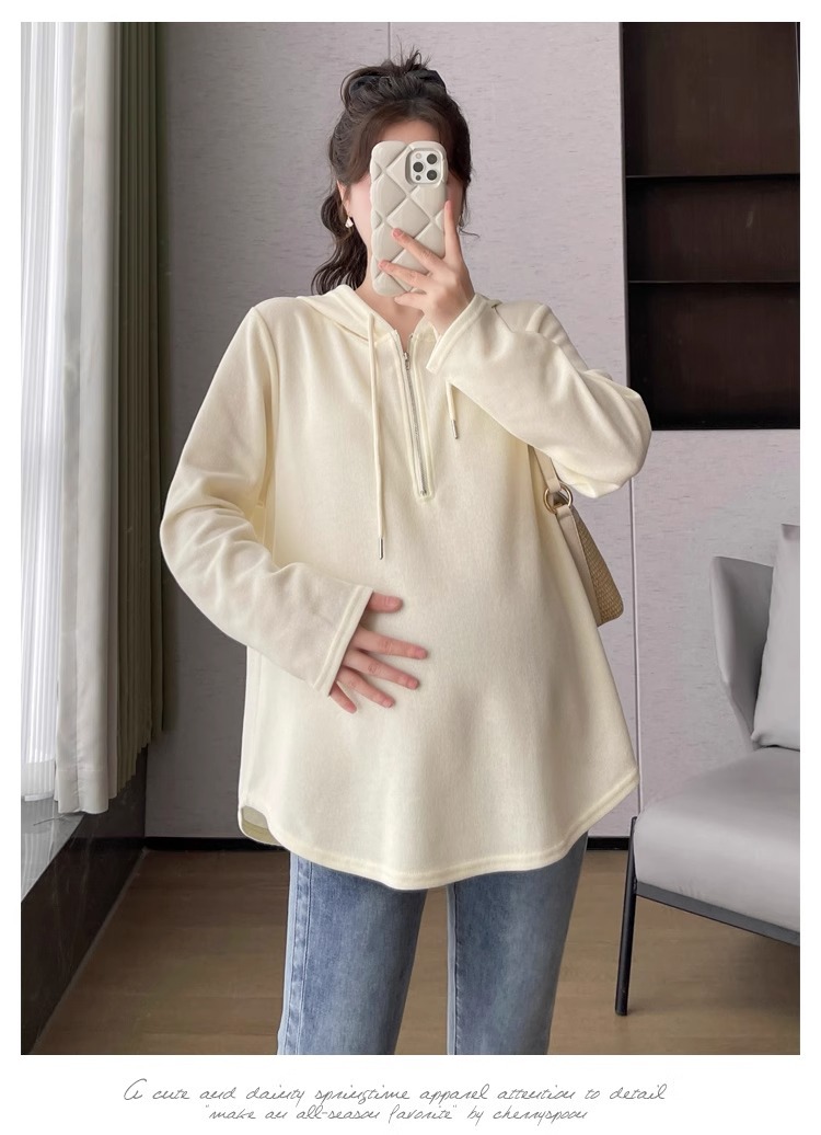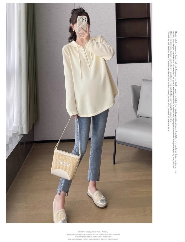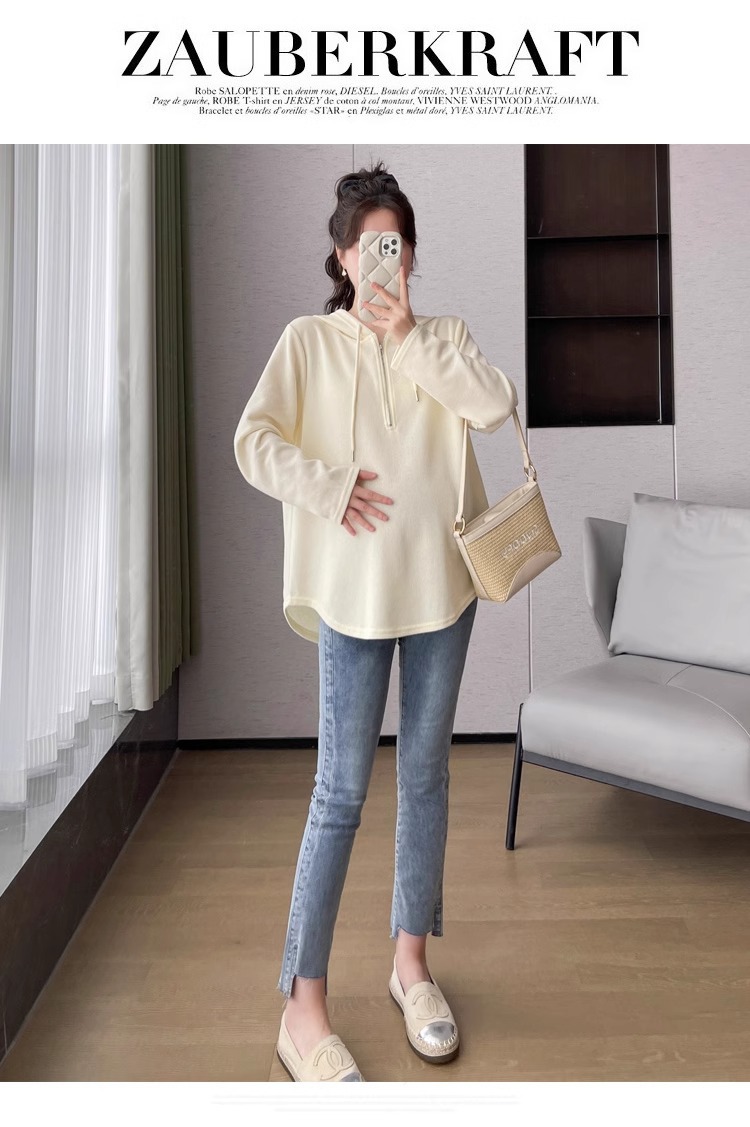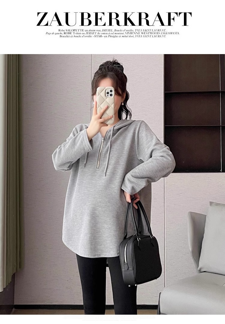 2024 весна и осень одежда для беременных новая мода корейская версия повседневная сладкая свободная футболка с капюшоном