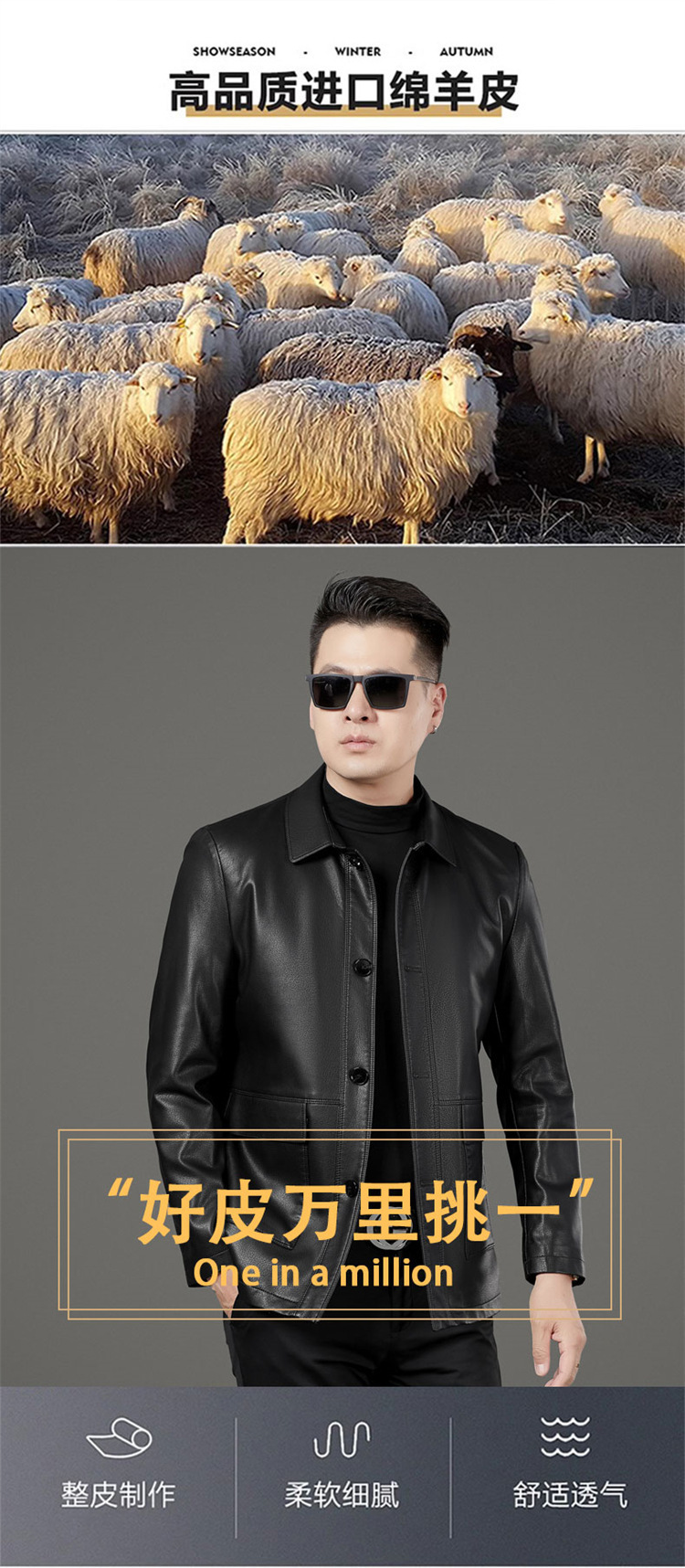Мужская осенне-зимняя куртка из овчины премиум-класса, деловой повседневный стиль, элегантная, стильная и универсальная.