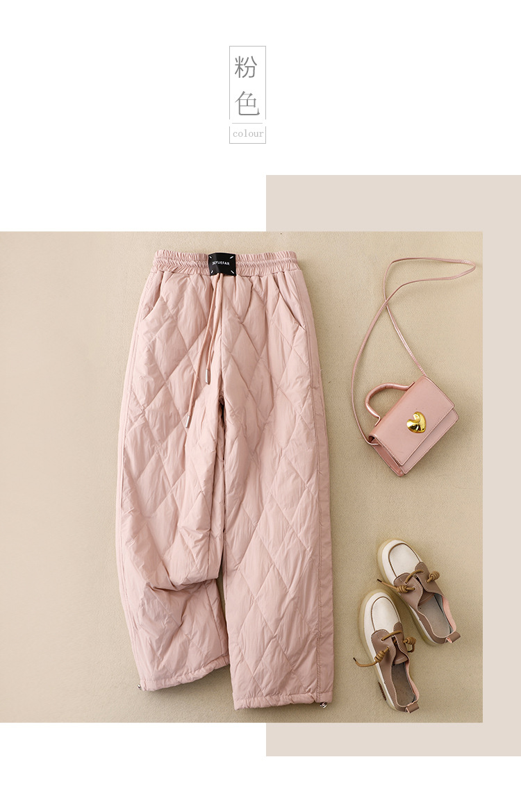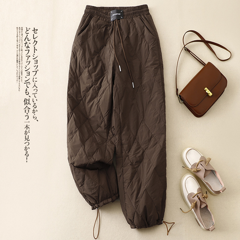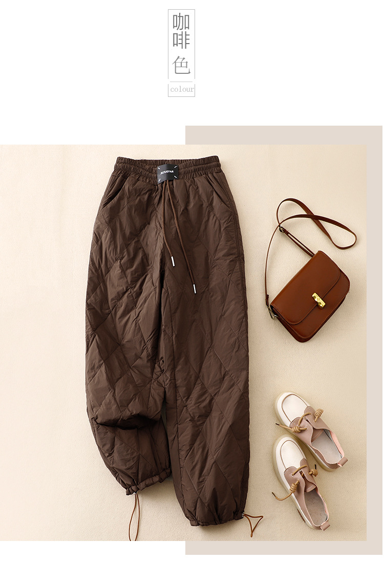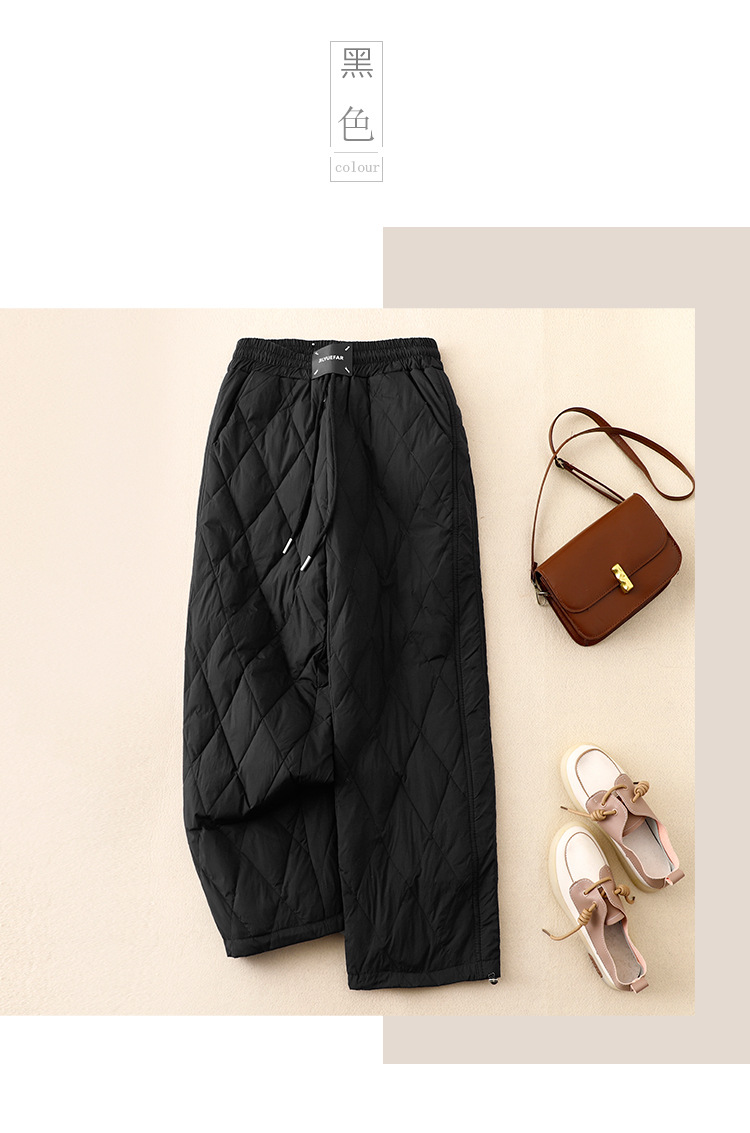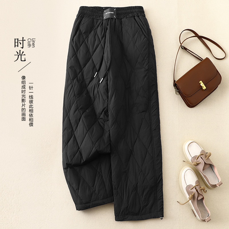 Настоящие фото новых зимних брюк 2025 года в ретро-стиле: однотонные, с высокой талией, на эластичном поясе, прямые, свободные, повседневные, хлопковые, теплые длинные брюки для женщин.