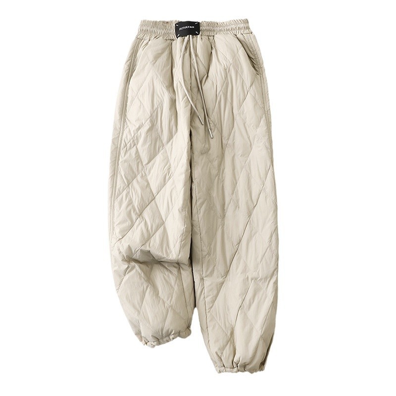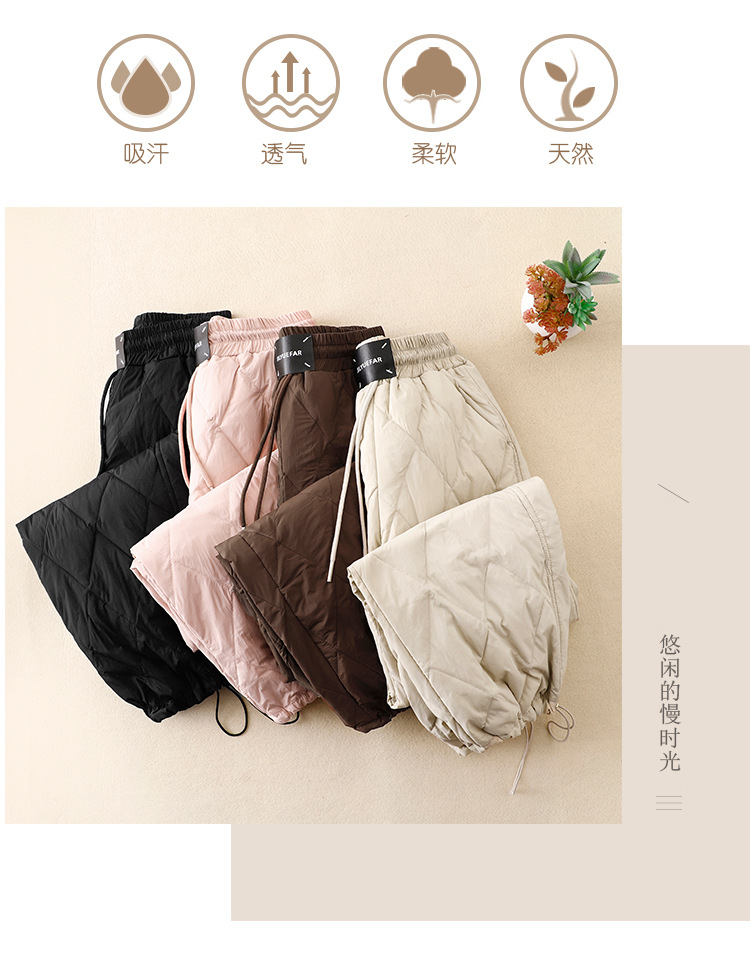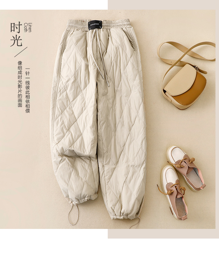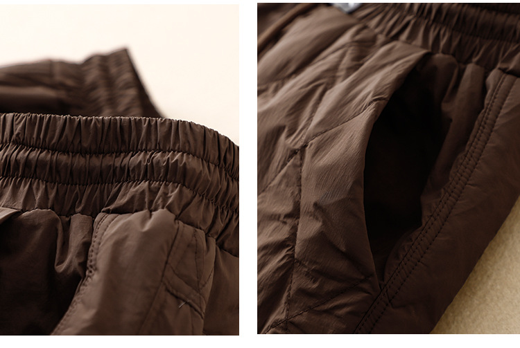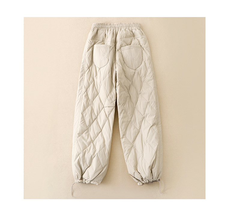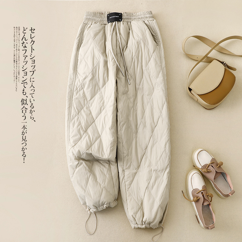 Настоящие фото новых зимних брюк 2025 года в ретро-стиле: однотонные, с высокой талией, на эластичном поясе, прямые, свободные, повседневные, хлопковые, теплые длинные брюки для женщин.