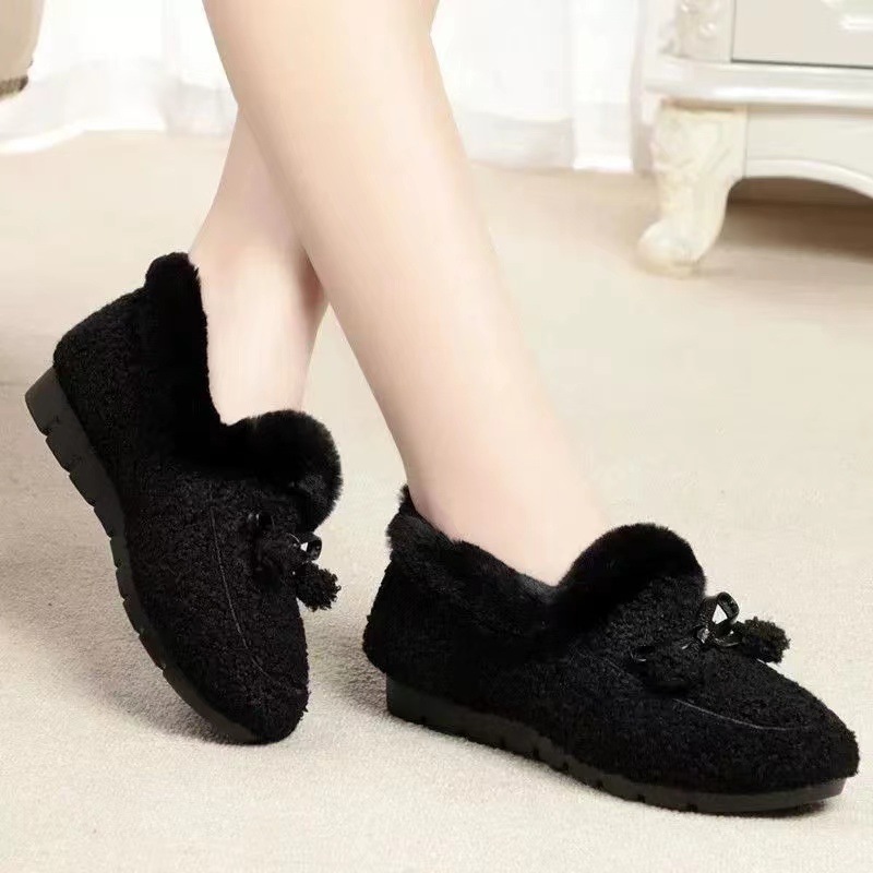 Бобовая обувь зимой плюс бархатные высококачественные хлопчатобумажные тапочки новый старый пекинский пожилой хлопчатобумажный ботинок с плоским дном и нескользящей круглой головкой