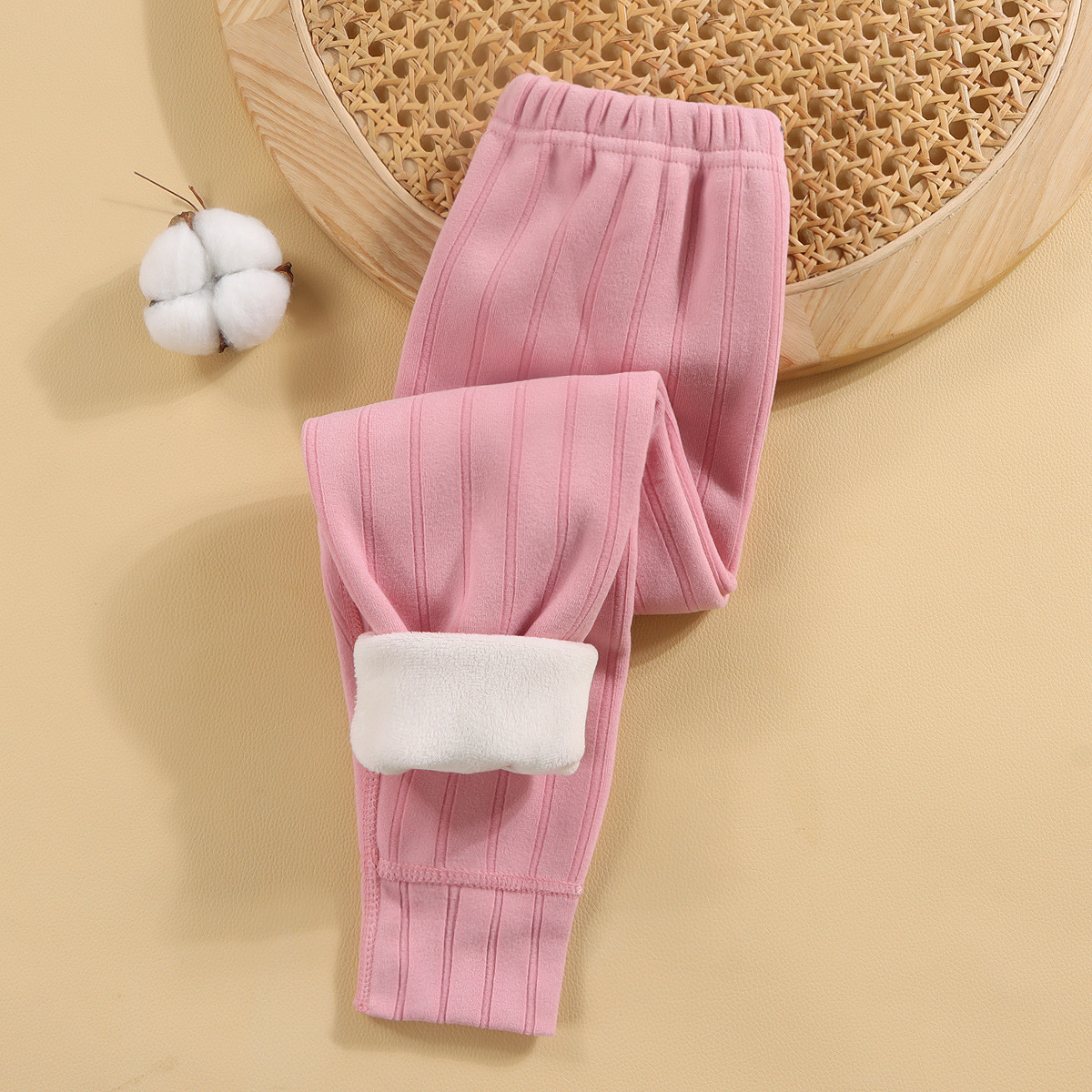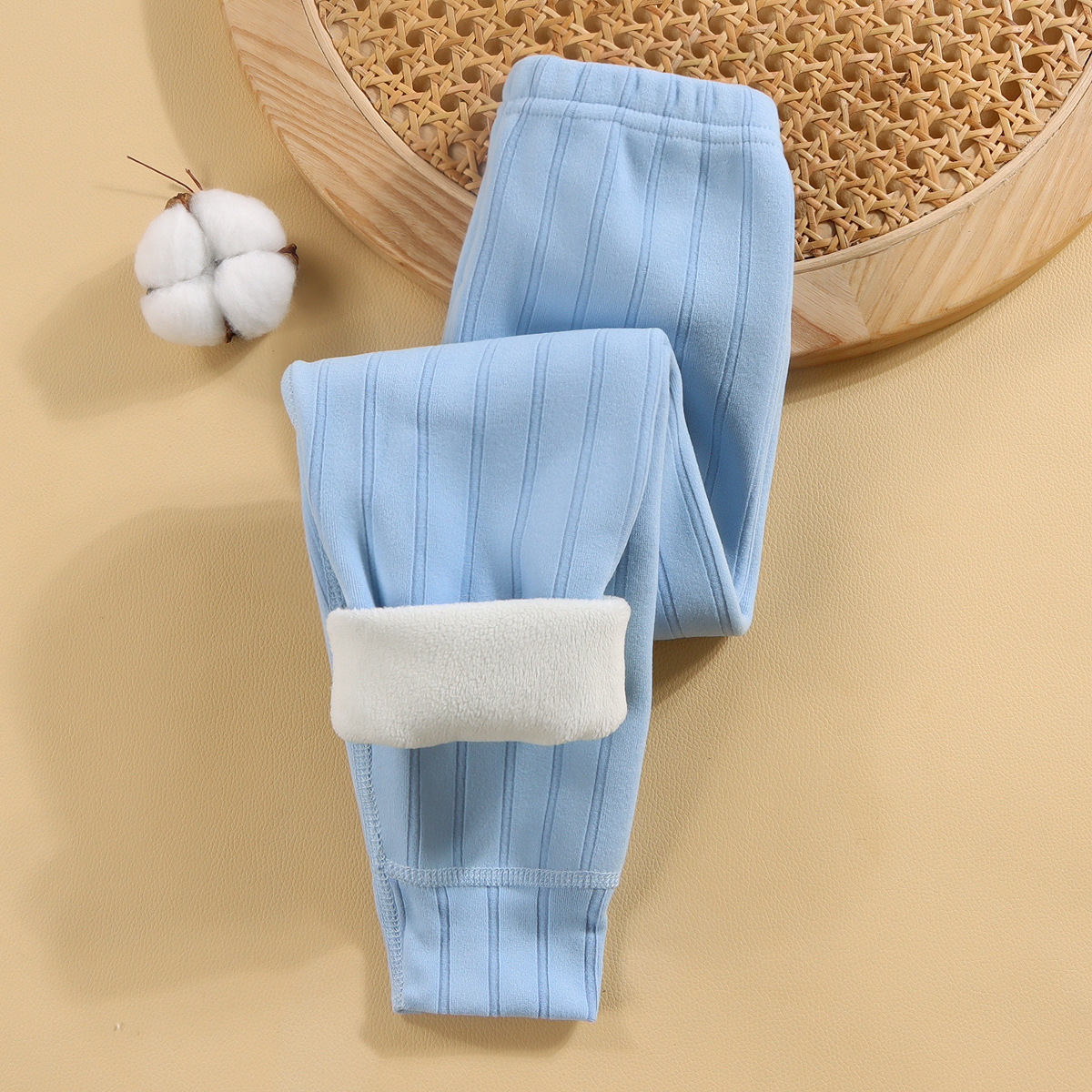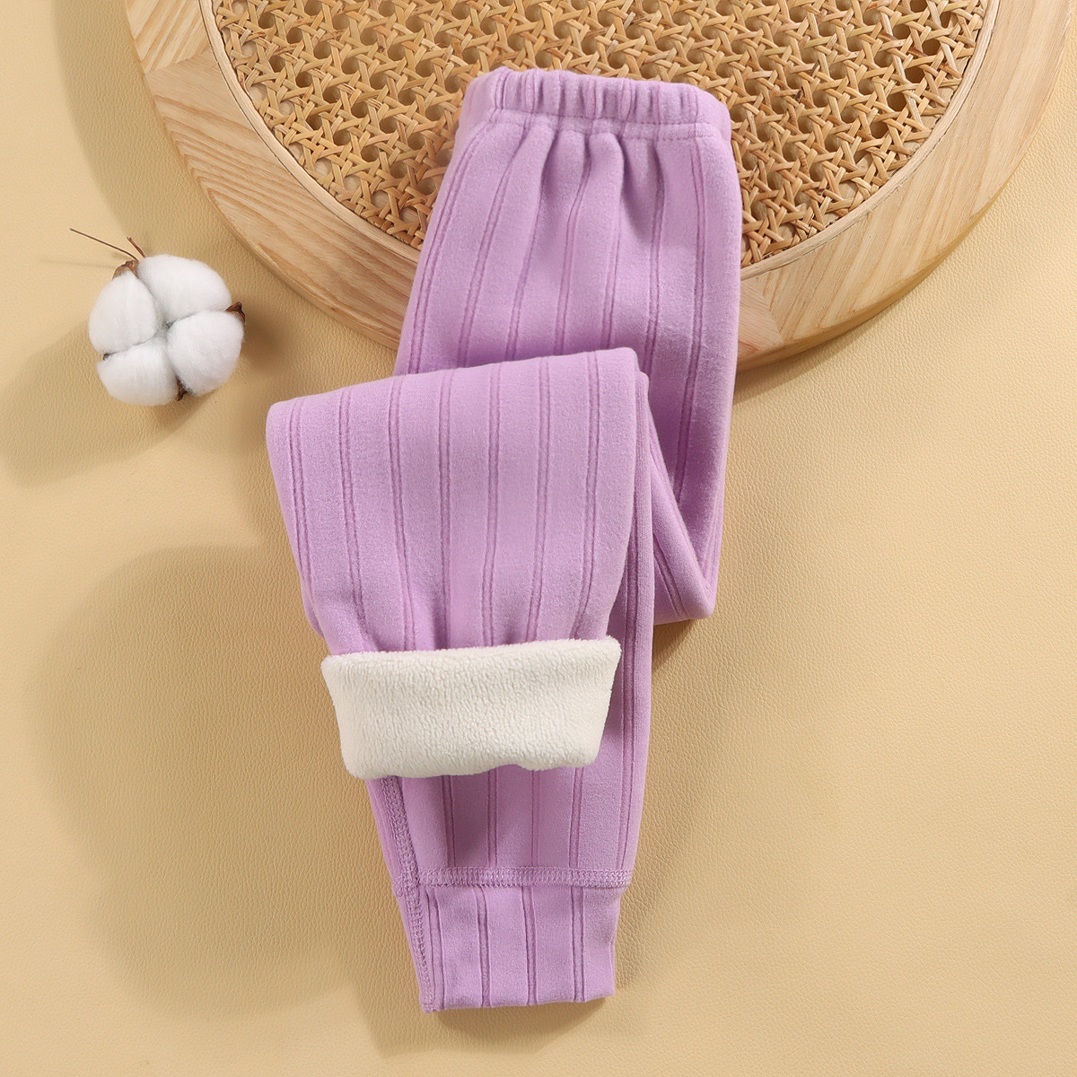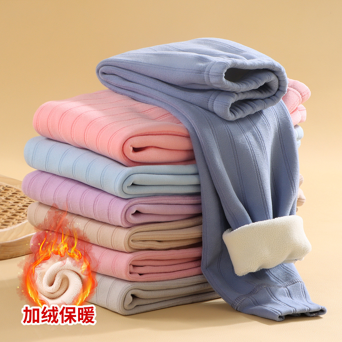 2025 новых детских бесшовных осенне-зимних толстых теплых брюк на флисовой подкладке для детей старшего возраста, одинарные брюки в римскую полоску для мальчиков и девочек.