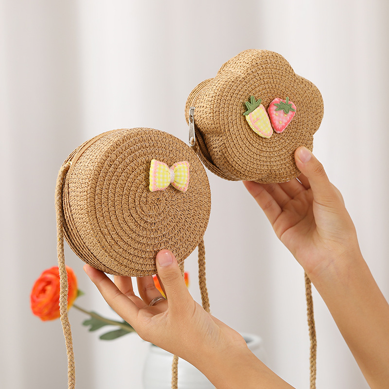 Пляжная плетеная сумка 2025: новая модель, соломенная сумка в стиле легкой роскоши, детская сумка, милая маленькая круглая сумка через плечо для женщин