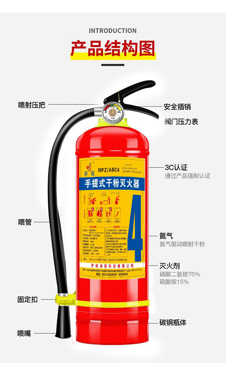 Оптовая продажа, новый национальный стандарт, сухой порошковый огнетушитель 4kg магазин, портативный огнетушитель, коммерческий бытовой завод, огнетушитель