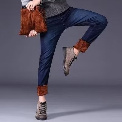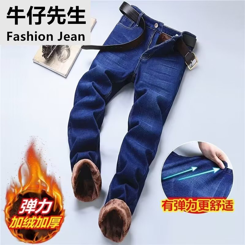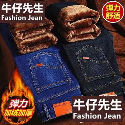 Осенние и зимние прямые узорные эластичные мужские джинсовые брюки повседневные брюки для работы доступные брюки оптом
