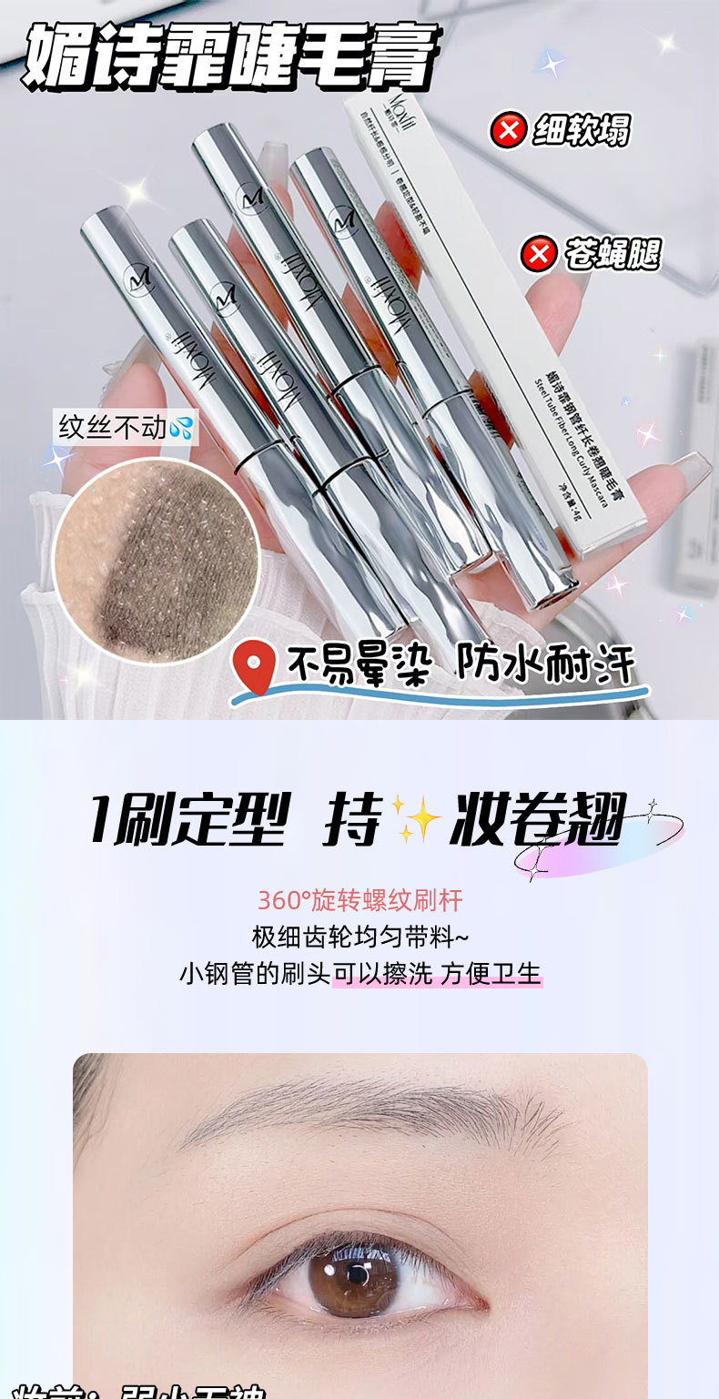 Тушь для ресниц Meishifei Steel Tube, стойкая, подчеркивающая изгиб ресниц, водостойкая и устойчивая к поту, натуральная и не образующая комочков.