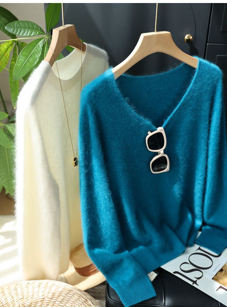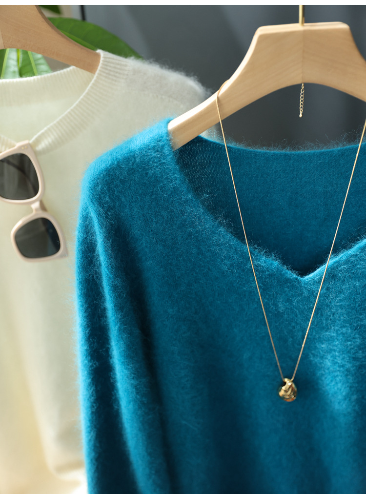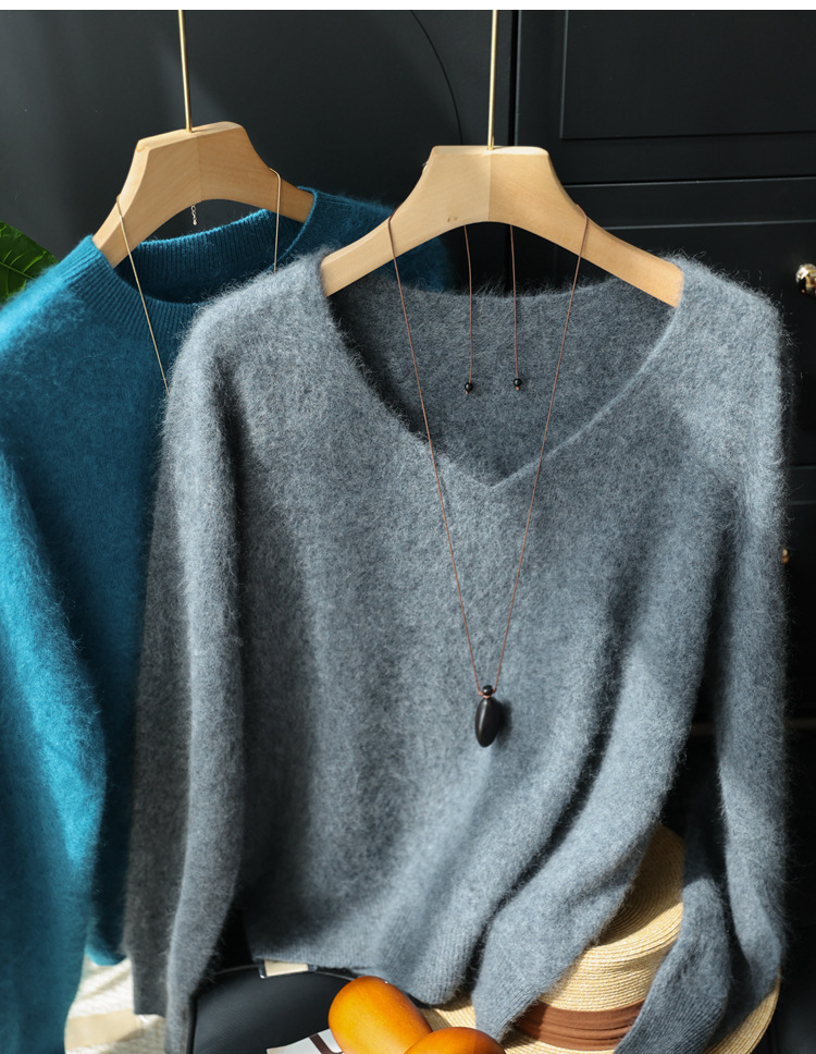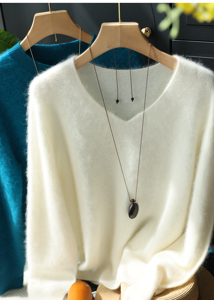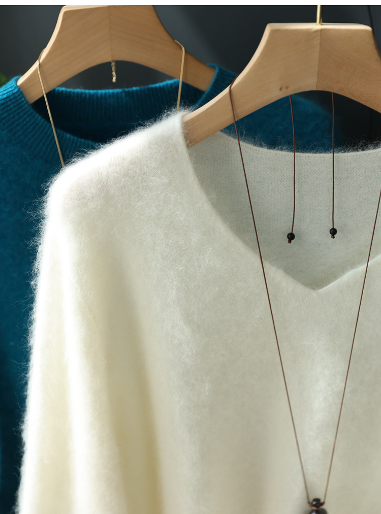 Отбеливание и высококачественный, протеченный внесезонный! Роскошный кашемировый свитер с круглым вырезом и v-образным вырезом из матовой шерсти, бесшовный женский свитер Shimajing