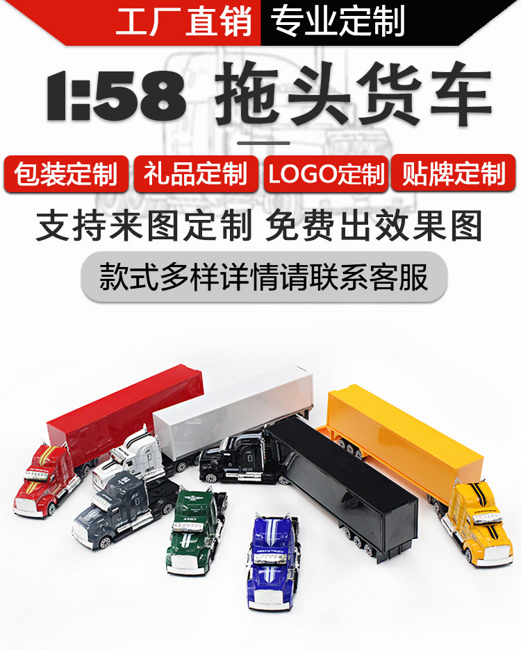 Индивидуальный контейнерный полуприцеп из сплава, масштаб 1:58, с возможностью нанесения логотипа и узоров, перепечатка цветной упаковки, оптовая продажа подарочных наборов.
