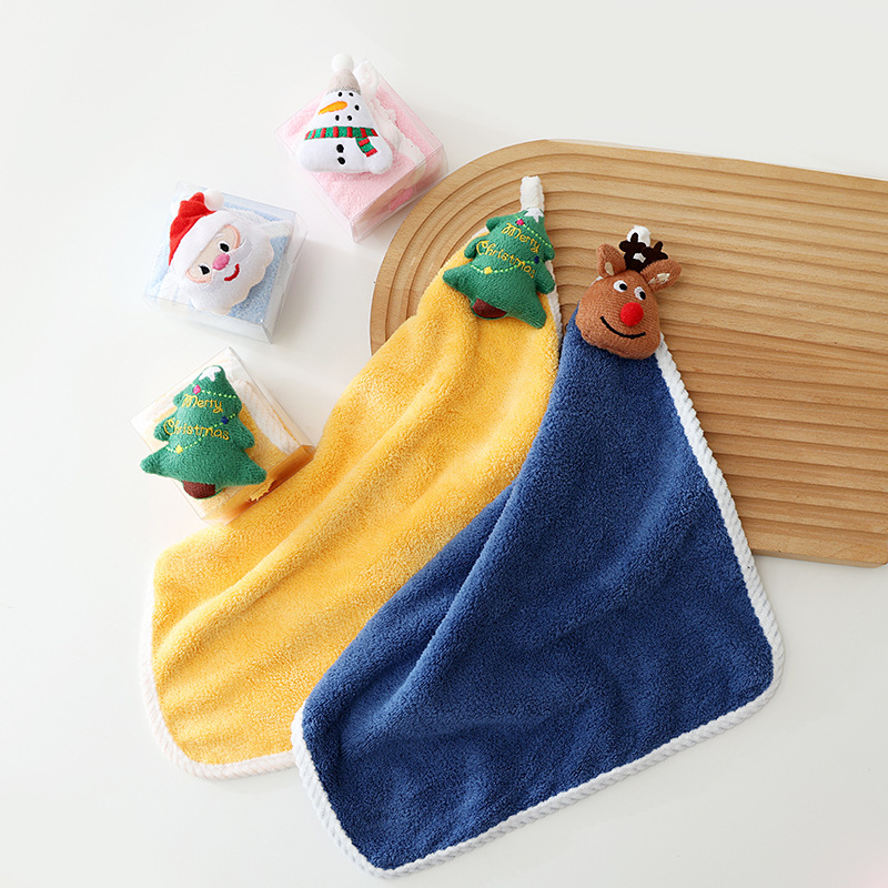 Полотенце для рук из кораллового флиса с мультяшным рисунком, детское, подвесное, сувенирное, для подарочных магазинов, к празднику, креативный подарок на открытие, рождественское полотенце для рук