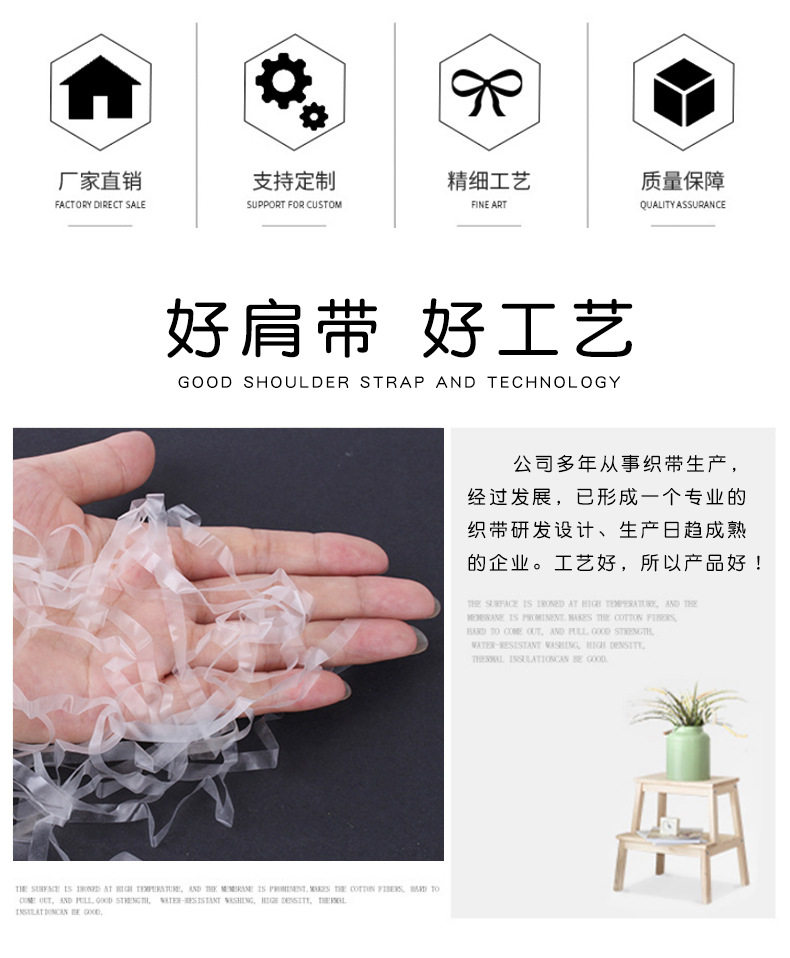 ТПУ Прозрачный плечевой ремень Матовый плечевой ремень Резчатый кожаный полоска Прозрачный резиновый невидимый резиновый ремень Тяговый плечевой ремень