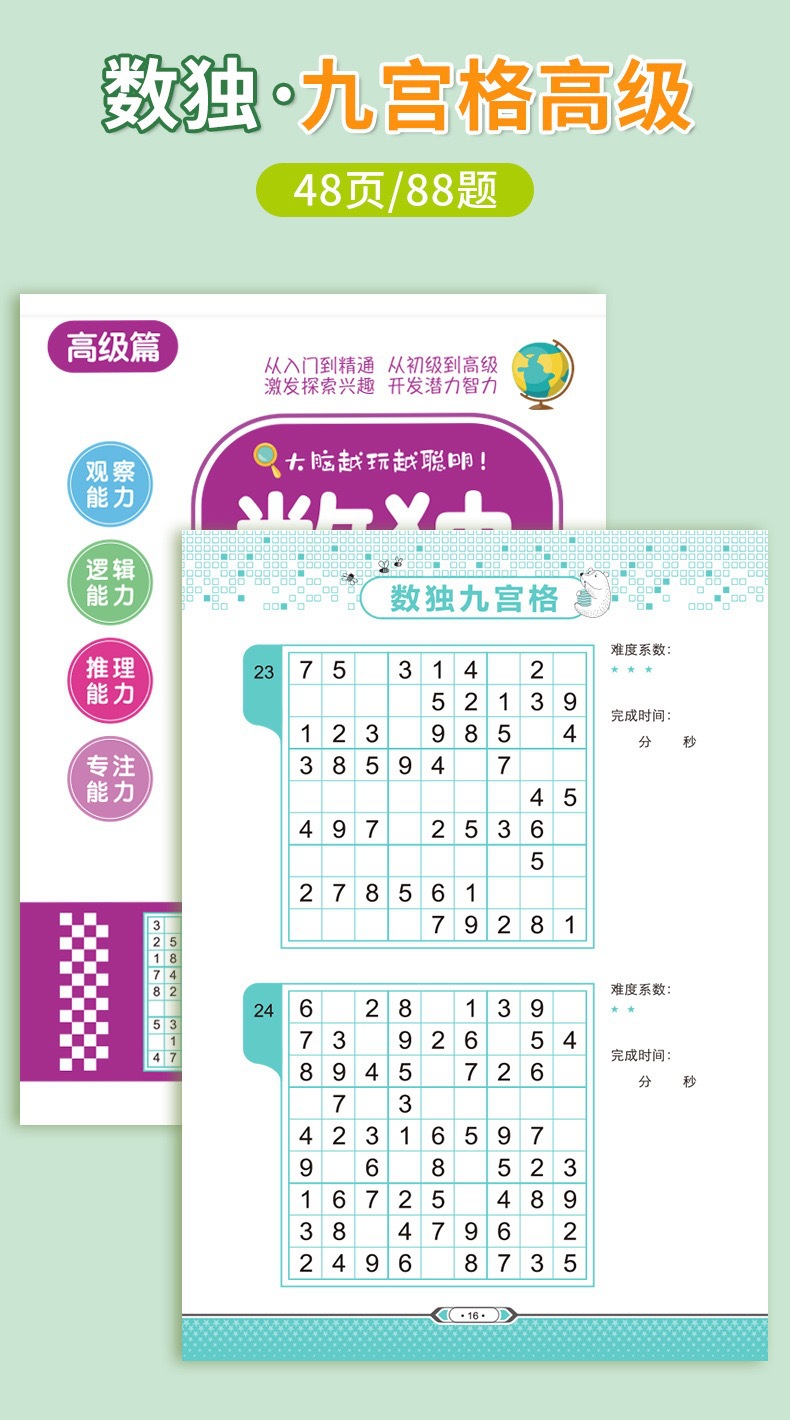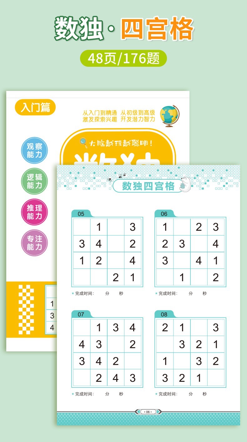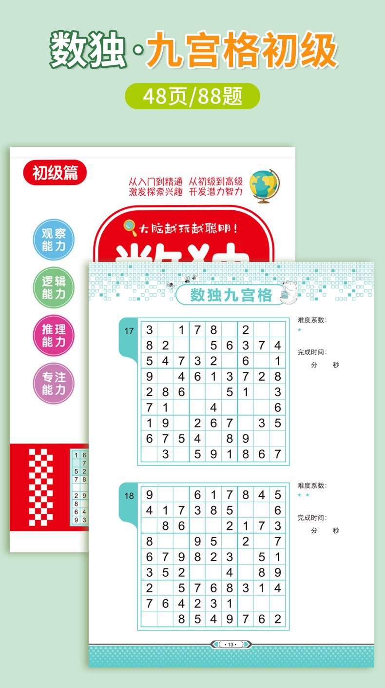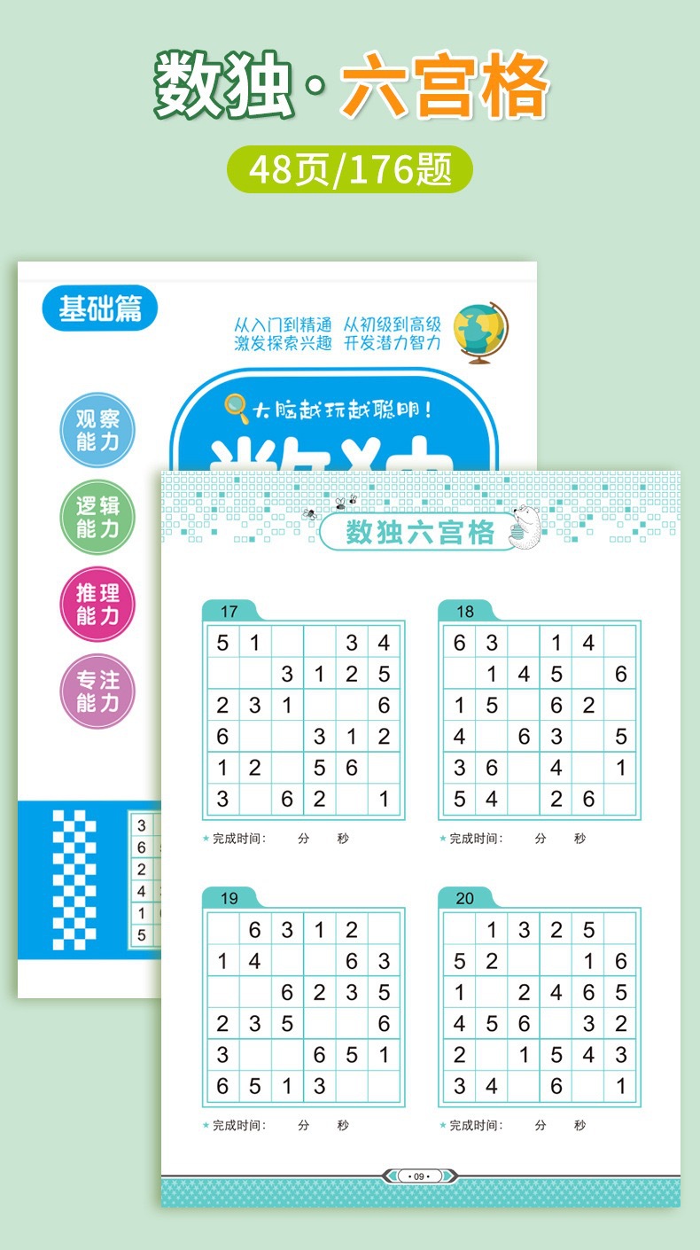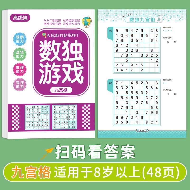 [Доход] Четырехквадратная сетка подходит для детей 3-6 лет (48 страниц).; [Основы] Шестиквадратная сетка подходит для детей 7-8 лет (48 страниц).; [Элементарная глава] Jiugongge подходит для детей от 8 лет (48 страниц).; [Усовершенствованная глава] Jiugongge подходит для детей от 8 лет (48 страниц).