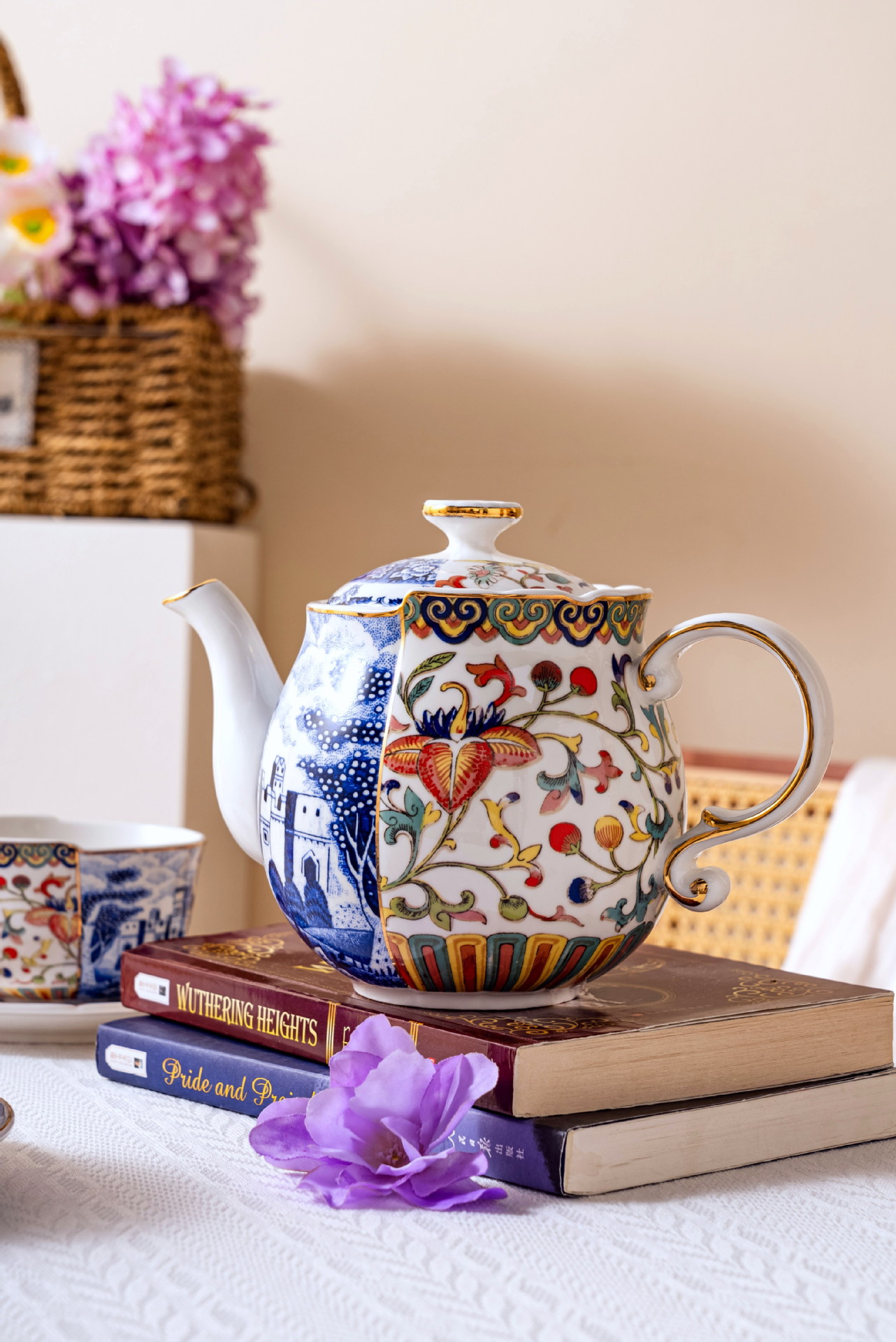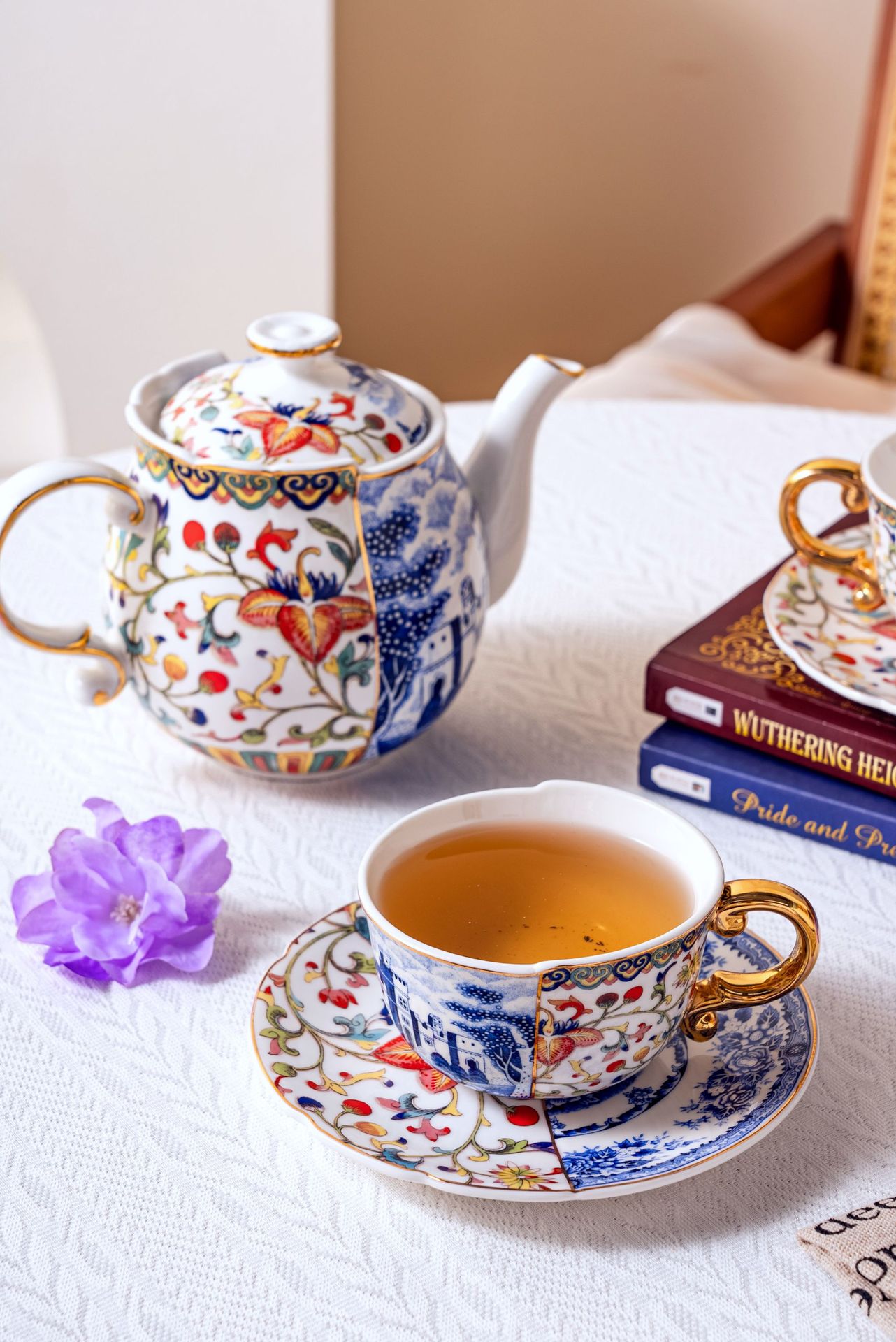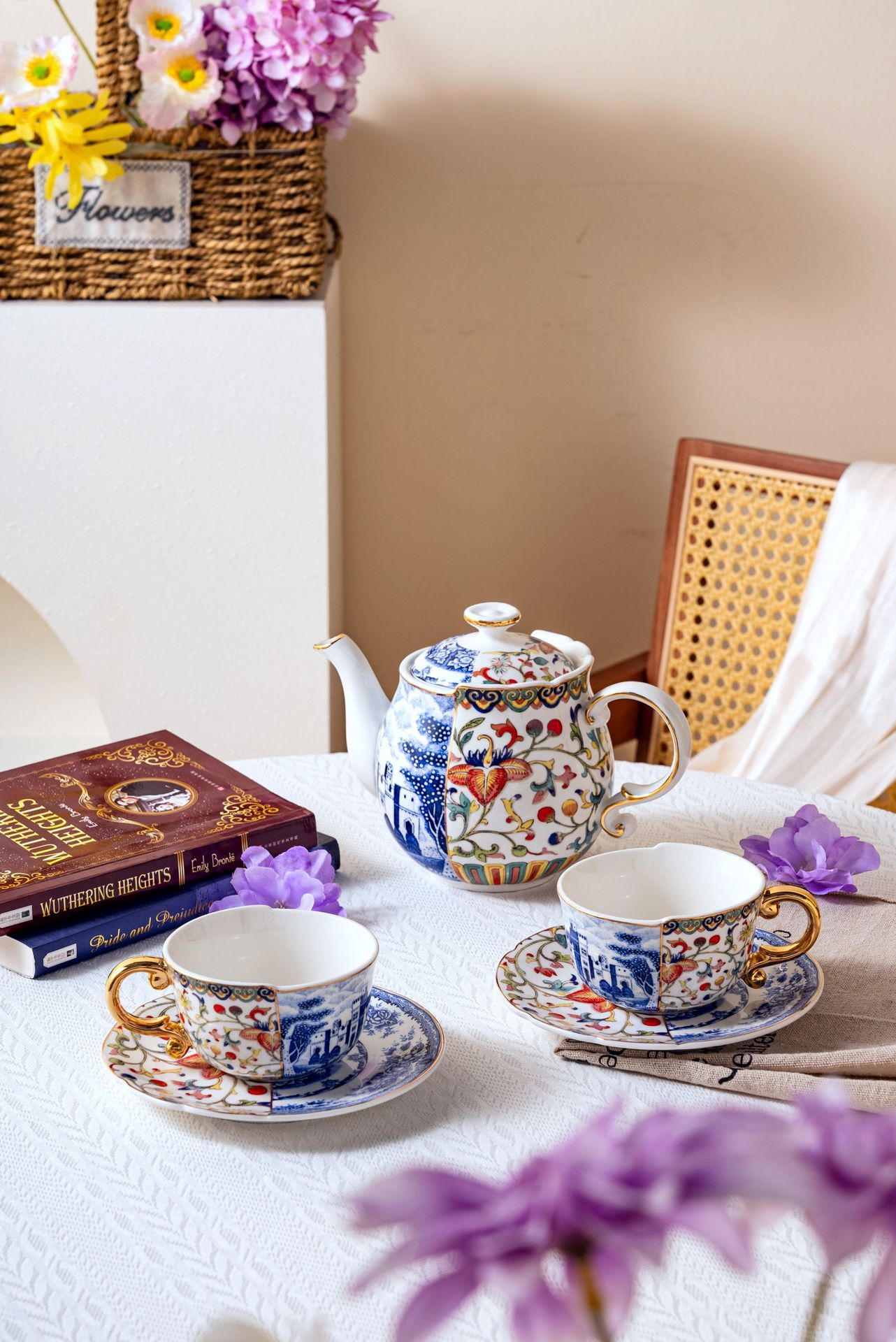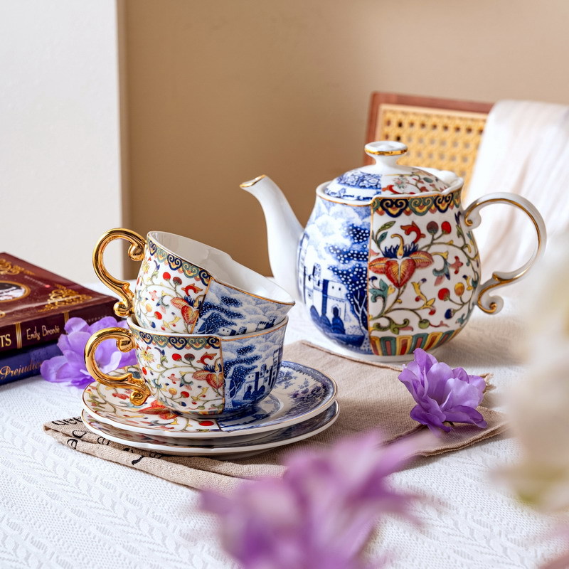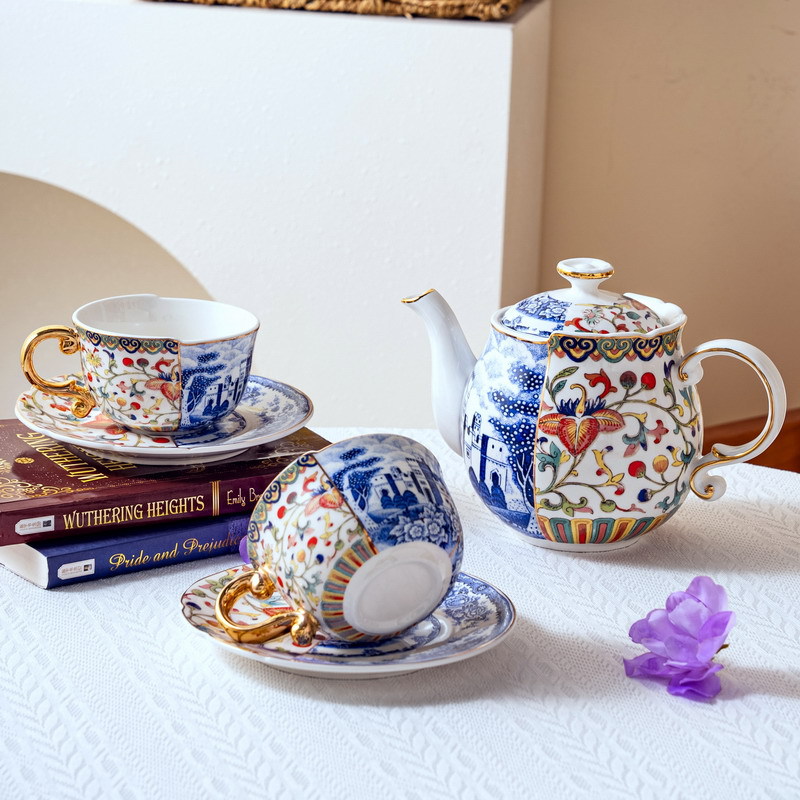 Doucai сине-белый 1 горшок 2 чашки и блюдца