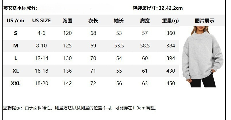 Amazon 2025 Толстовка в европейском и американском стиле с длинными рукавами и высоким воротником, пуловер, повседневная толстовка, топ на флисовой подкладке для женщин