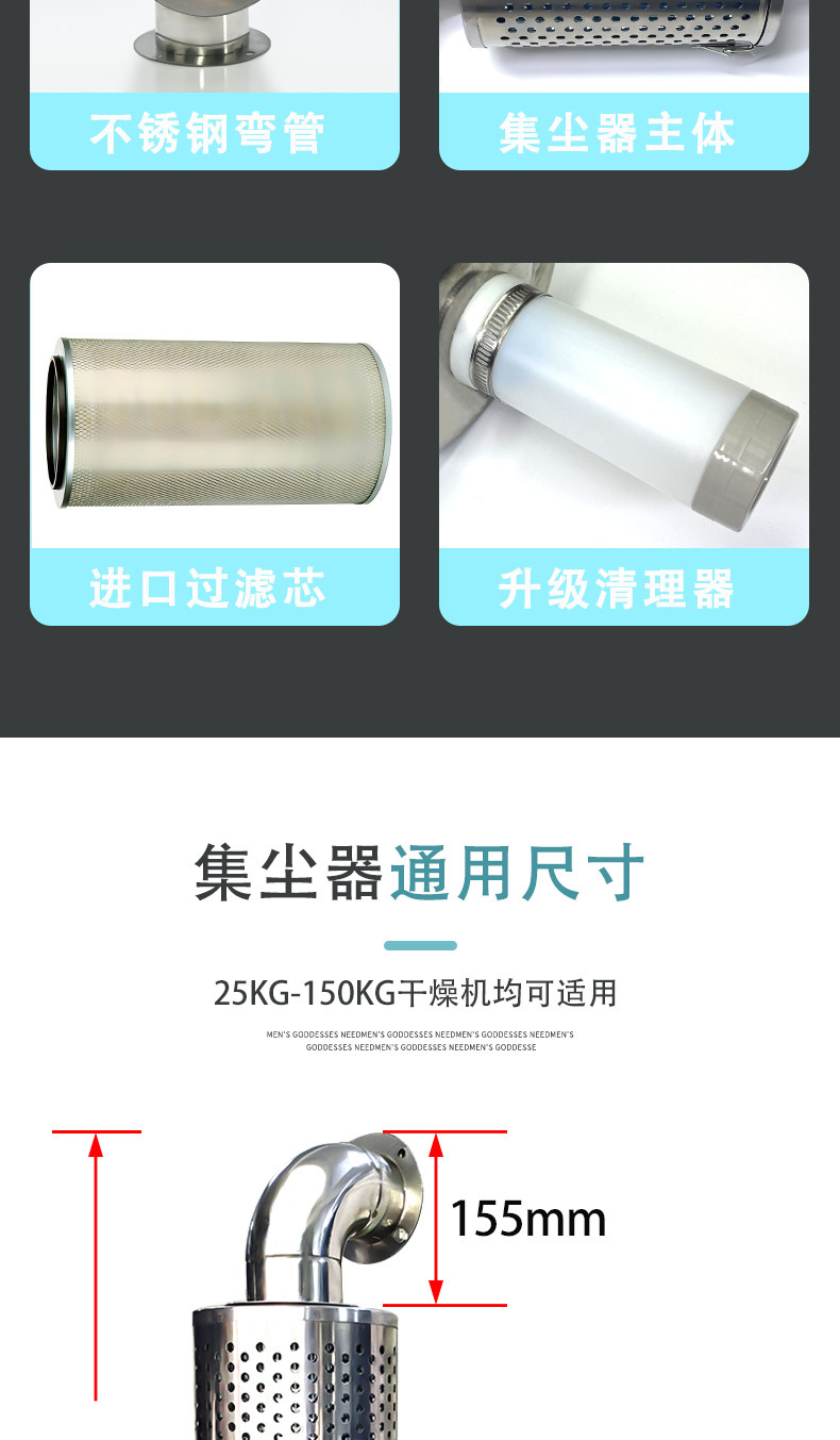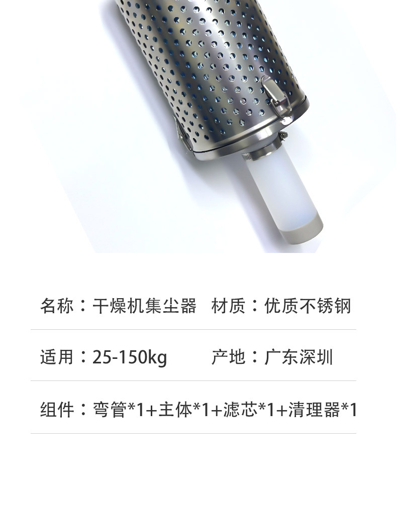 Пылесборник для сушилок (общий до 25-150 кг); Фильтрующий элемент сушилки (случайный цвет, будьте осторожны при покупке); Мешок для пыли сушилки (общий до 25–150 кг); Локоть сушилки (общий до 25–150 кг)