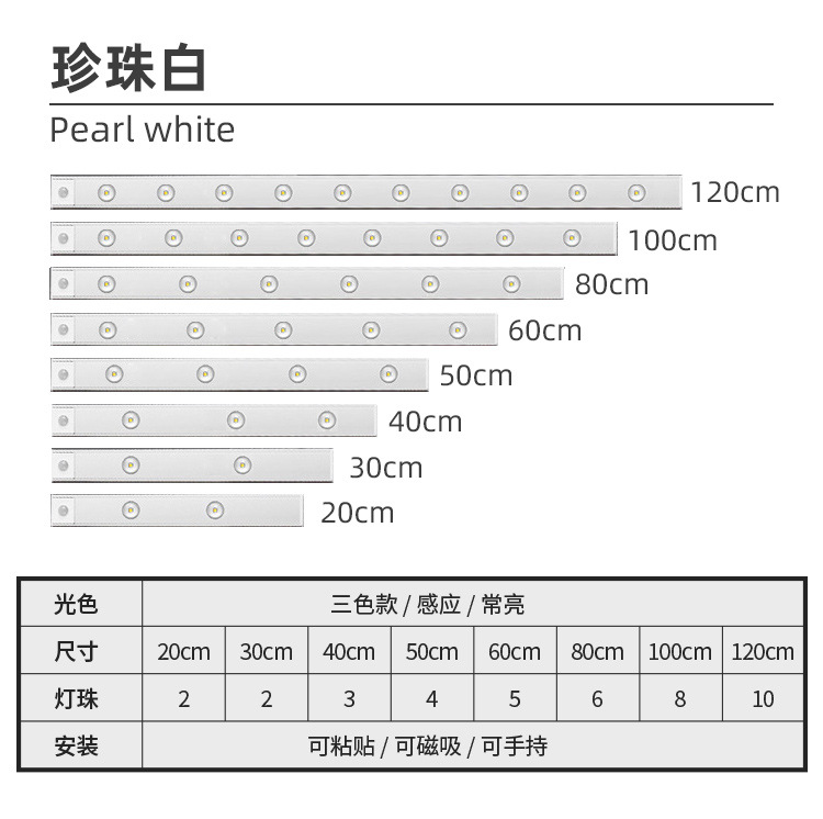 20 см/три цвета регулируемые+сенсор/2 бусины; 30 см/три цвета регулируемые+сенсор/2 бусины; 40 см/три цвета регулируются+сенсор/3 бусины; 50 см/три цвета регулируются+сенсор/4 бусины; 60 см/три цвета регулируются+сенсор/5 бусин; 80 см/три цвета регулируются+сенсор/6 бусин; 100 см/три цвета регулируемые+сенсор/8 бусин; 120 см/три цвета регулируемые+сенсор/10 бусин