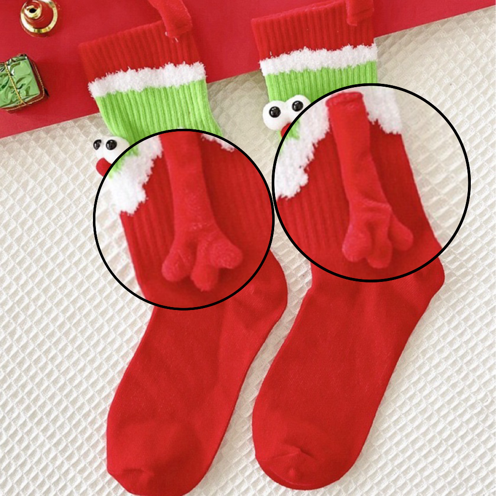 Держа в руках носки пара магнитных притяжек милые носки рождественские хлопчатобумажные автоматические наклейки