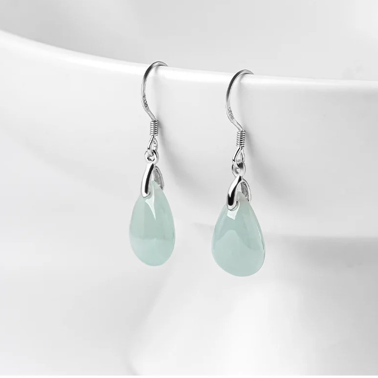 Высококачественный S925 серебряный инкрустированный натуральный изумрудный капли воды серьги ледяной камень нефритовый модный женский серьги серьги серьги