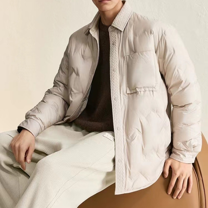 Мужская тонкая пуховая куртка с оригинальным дизайном 2024 года, новинка, утепленная, с узором «пшеничное зерно», с маленьким отложным воротником