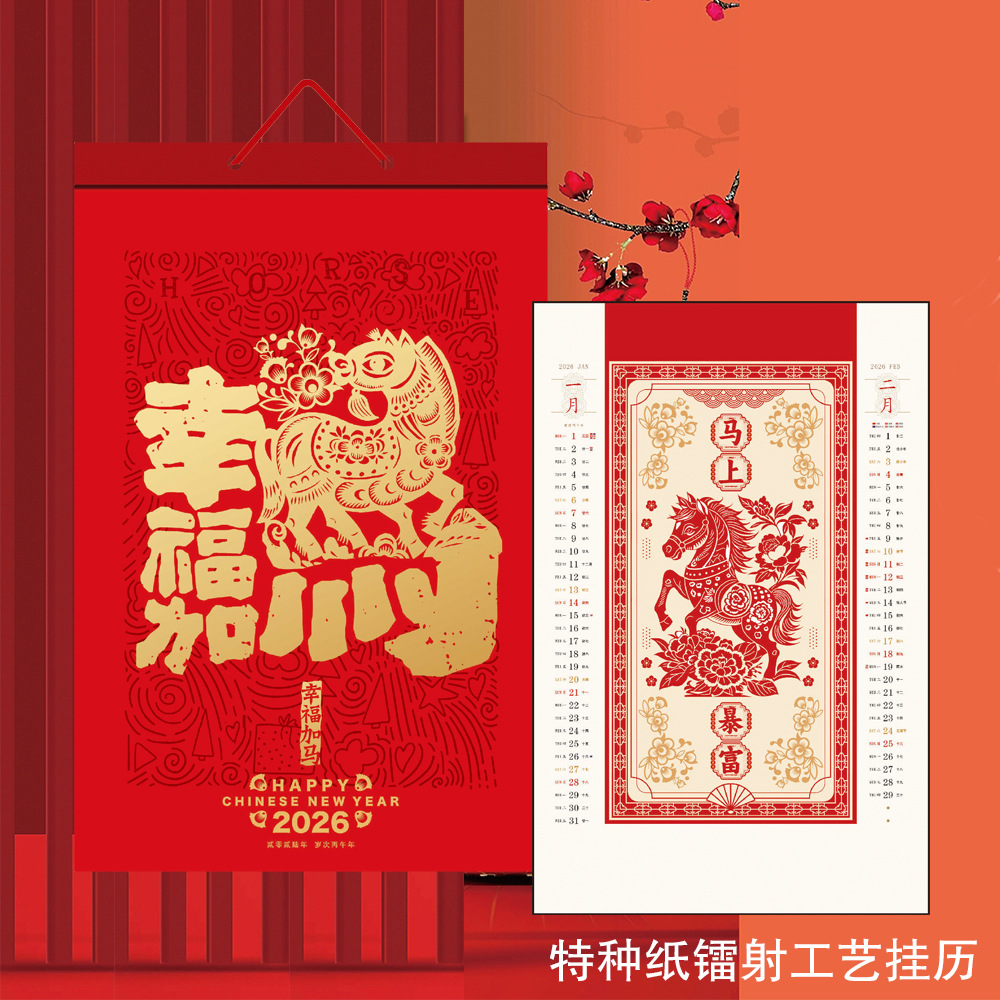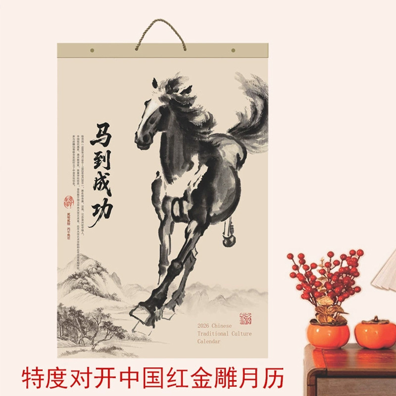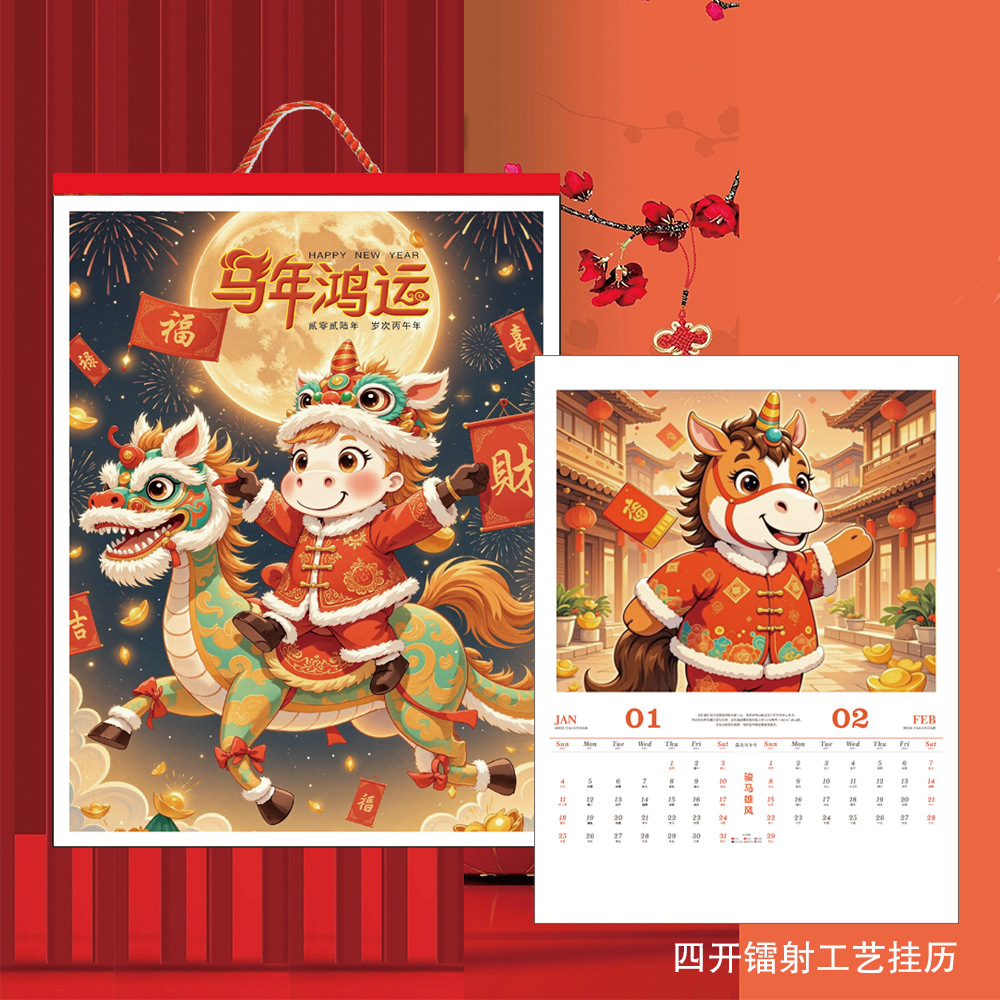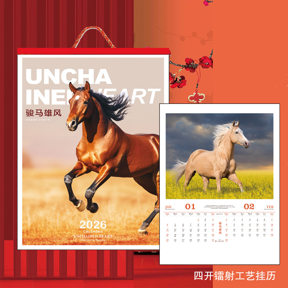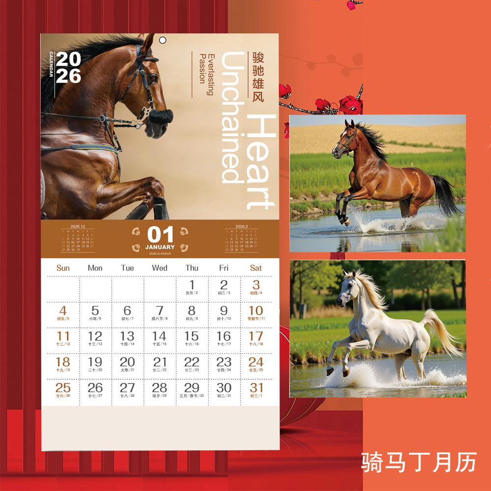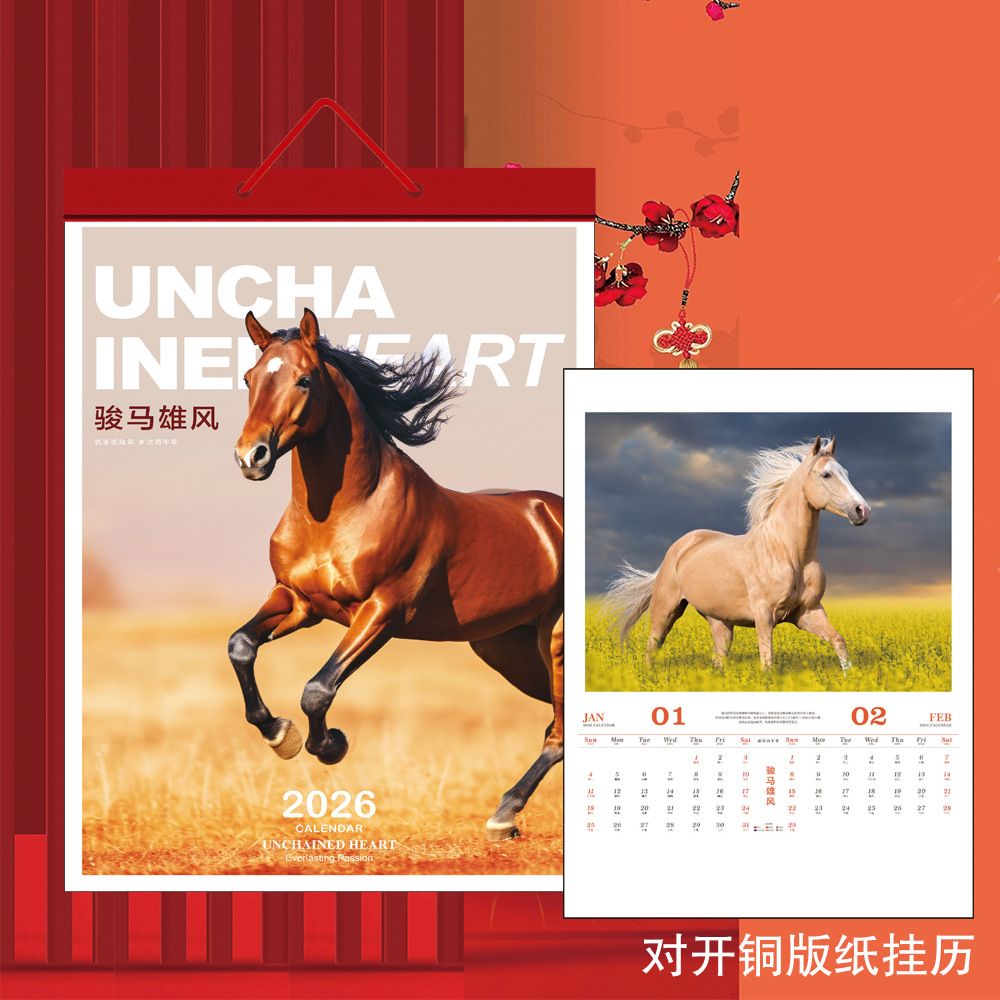 Календарь на 2026 год (Год Лошади) с тиснением, креативный, ежемесячный, с рекламой, корпоративным логотипом, золотым тиснением, настенный, для экспорта