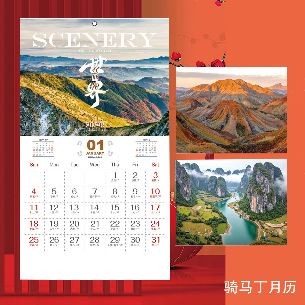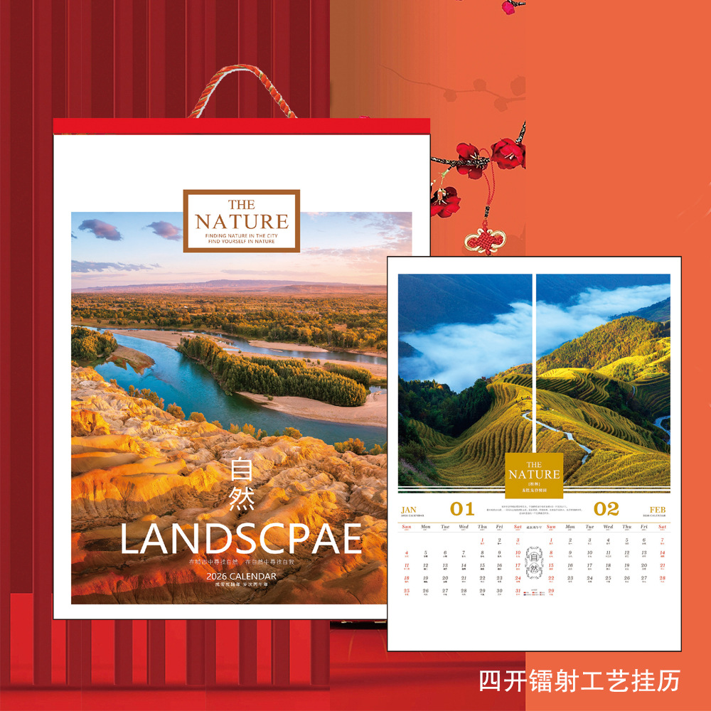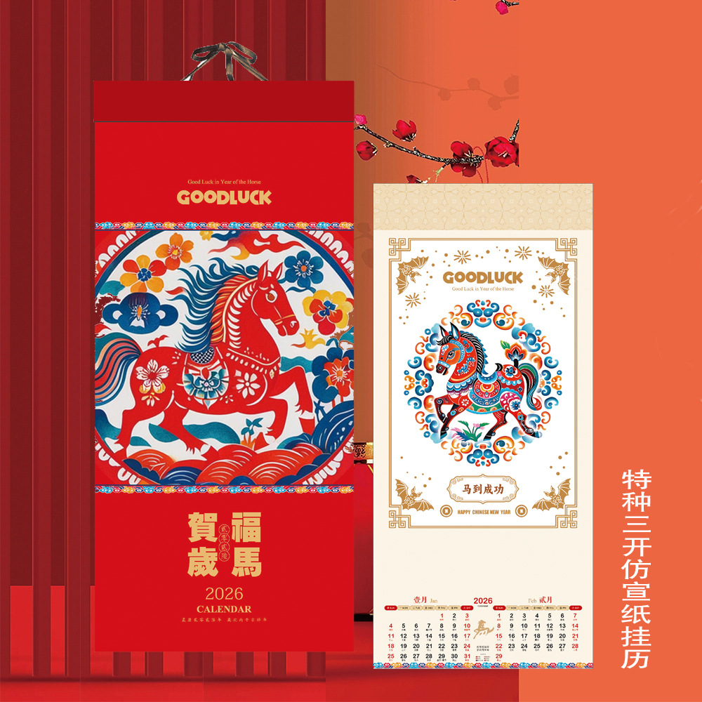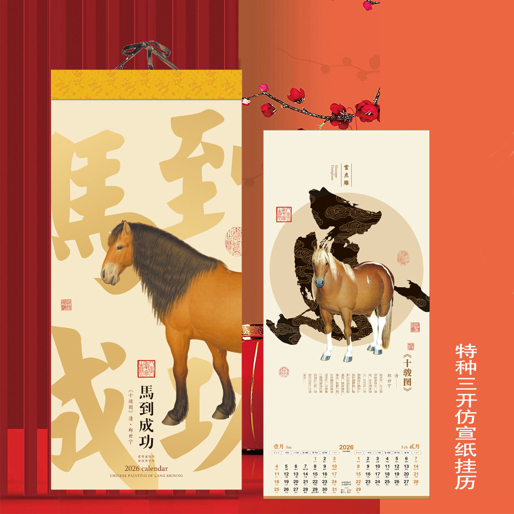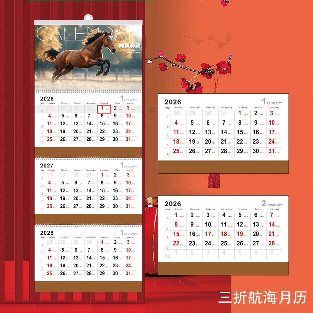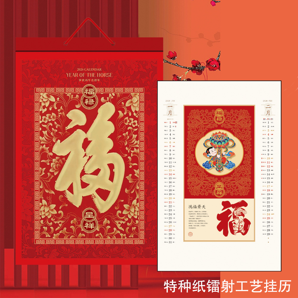Календарь на 2026 год (Год Лошади) с тиснением, креативный, ежемесячный, с рекламой, корпоративным логотипом, золотым тиснением, настенный, для экспорта