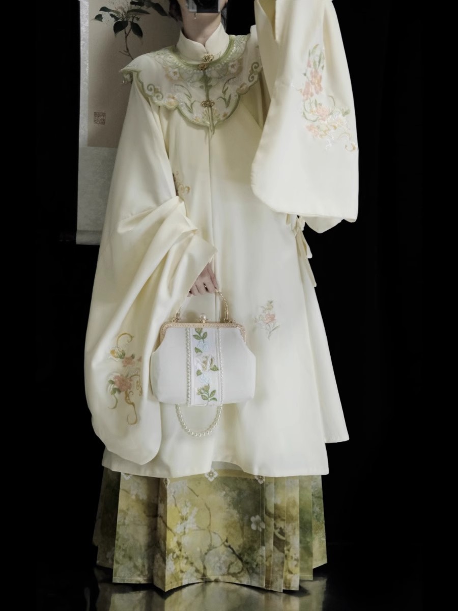 Женское ханьфу в стиле династии Мин【Mùqiū】с изысканной вышивкой, длинное платье с воротником-стойкой в стиле династии Мин, дизайн с эффектом «облачных плеч», юбка «лошадиная морда», новая осенне-зимняя модель.