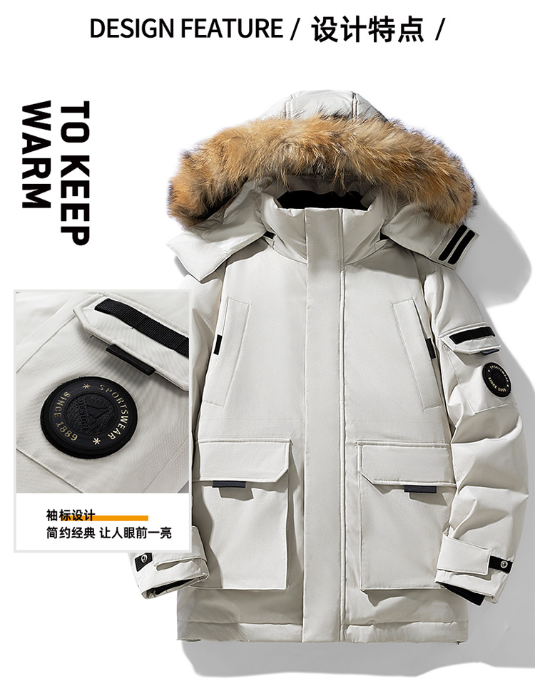 Пуховик мужской, зима 2024, новая высококачественная мужская куртка средней длины на белом утином пуху, которую можно отправлен в одной штуке.