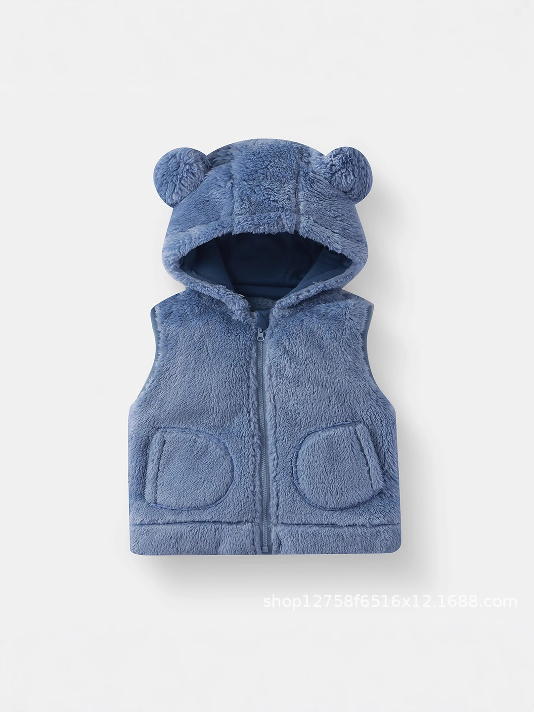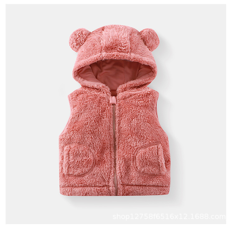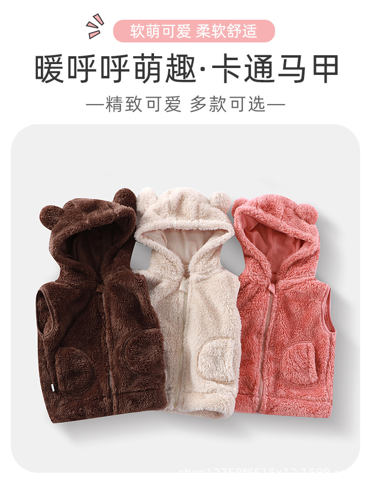 Детские жилеты осенью и зимой новые плюшевые молнии с капюшоном