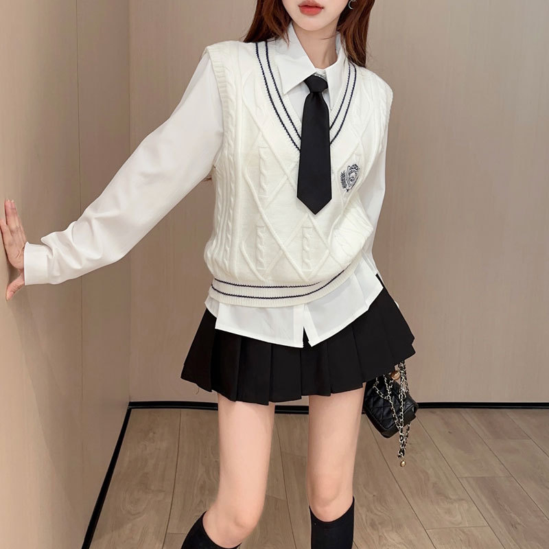 Академическая одежда стиль трикотажный жилет женский 2024 новый длинный рукав белая рубашка