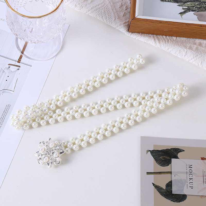 Женская жемчужная цепочка на талии корейская версия стразы жемчуг декоративный пояс мода сладкое платье эластичный ремень для женщин оптом