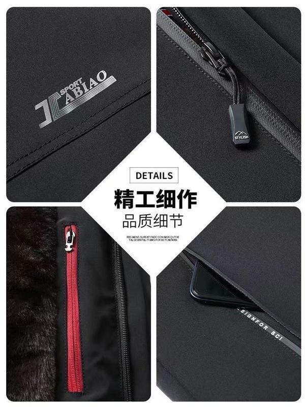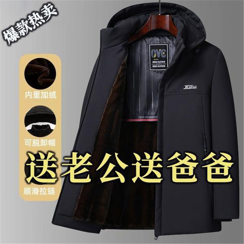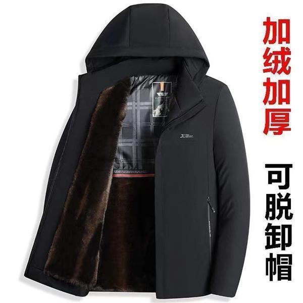【Золотистый мех норки Хайнинг】 Распродажа: Мужская утепленная парка на флисе для мужчин среднего и старшего возраста, деловая одежда для пап среднего возраста