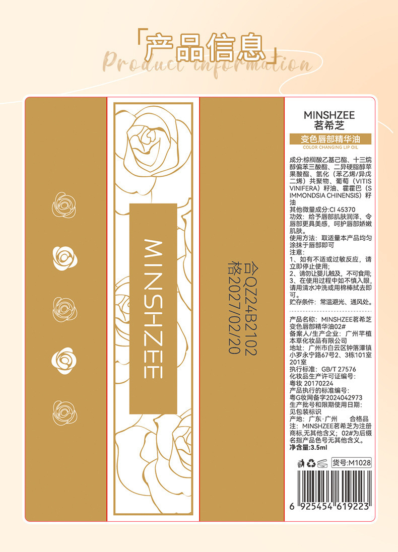 Масло для эссенции губ M1028 меняющее цвет