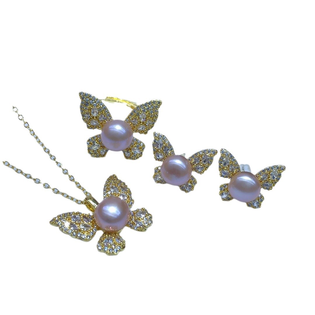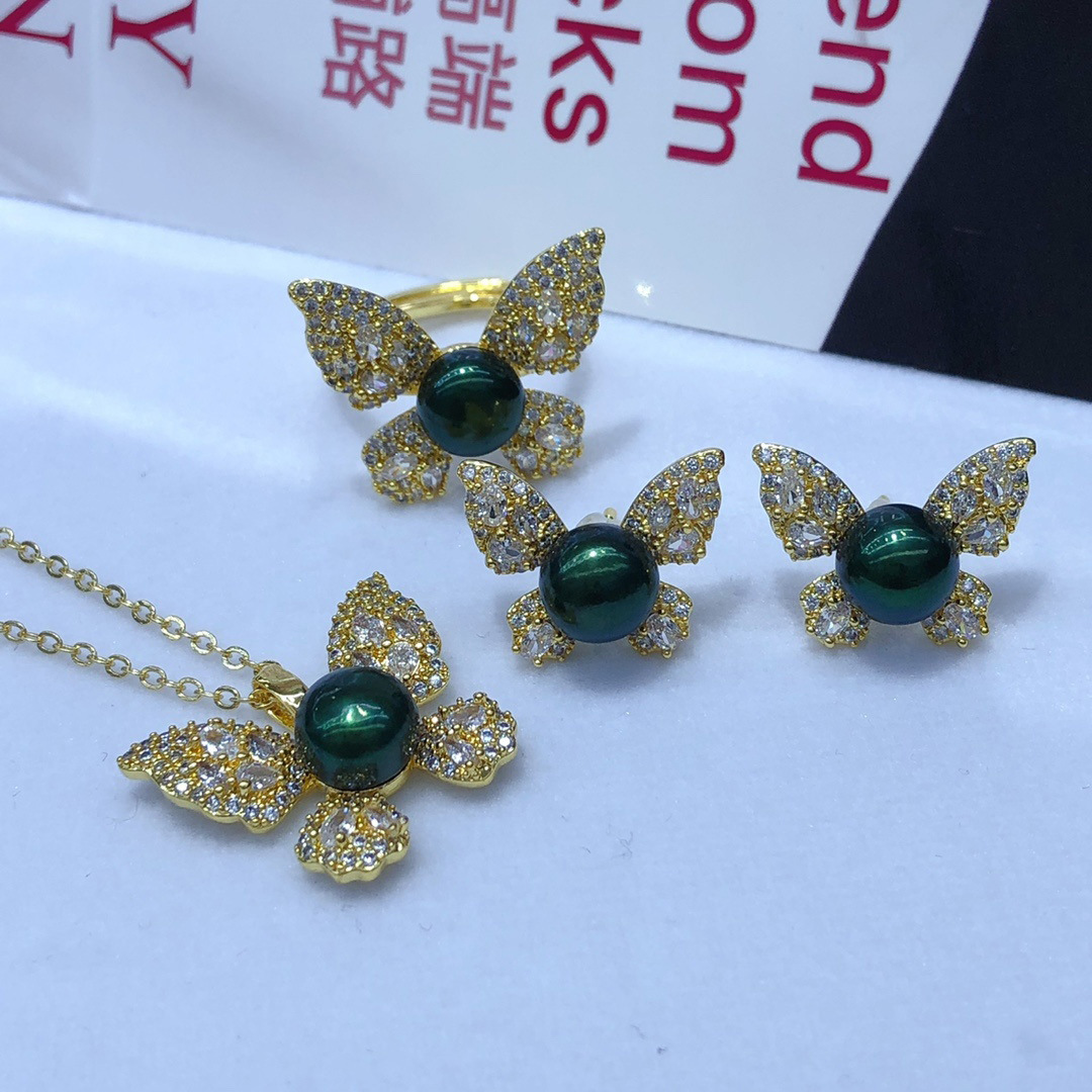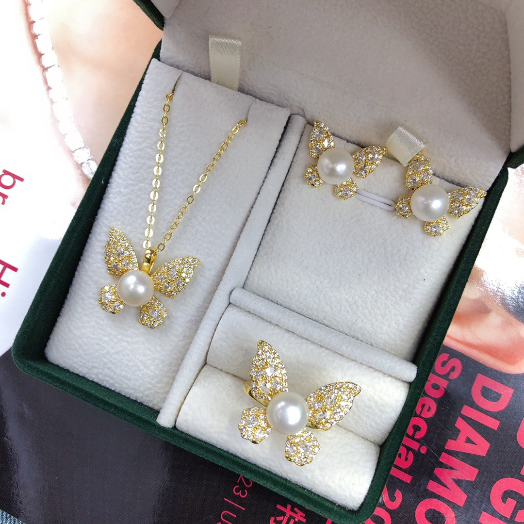 Самый продаваемый элегантный комплект украшений в стиле бабочки: колье, серьги, кольцо, бусы из бисера — набор из трех предметов, в стиле легкой роскоши.