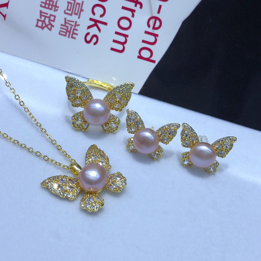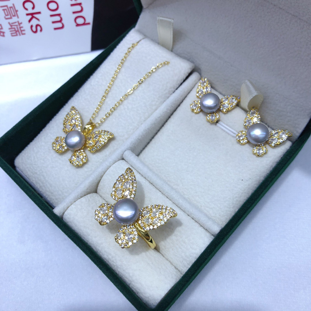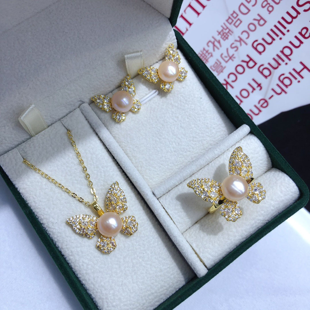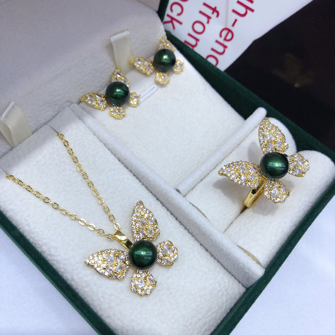 Самый продаваемый элегантный комплект украшений в стиле бабочки: колье, серьги, кольцо, бусы из бисера — набор из трех предметов, в стиле легкой роскоши.