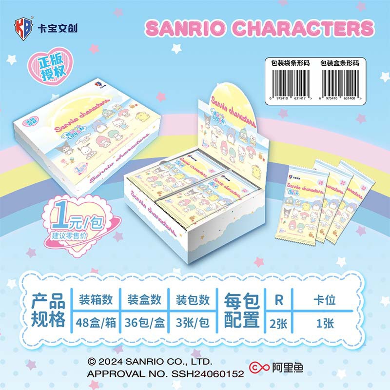 2-й пакет Sanrio 1 юань — 1 коробка по 40 упаковок.; 2-й упаковка Sanrio по 2 юаня – 1 коробка по 33 упаковки.; (Упаковка Sanrio 1 юаня — 1 коробка по 36 упаковок по 108 листов); Sanrio 10 юаней упаковка - 1 коробка 18+2 упаковки; Упаковка Sanrio 5 юаней – 1 коробка по 22 упаковки.; Первый план Sanrio, упаковка десять юаней, 20 упаковок в коробке.; (Симпатичная сумка Sanrio с коробкой из 30 упаковок); (Окрашенная цветная упаковка Sanrio в коробке по 20 упаковок); (Пакет Sanrio Qimeng в коробке по 15 упаковок); Коллекционные карты Sanrio Family-Quick Root в коробке из 20 упаковок.; (Симний значок Sanrio Family Cute Dong 1 коробка_10 упаковок)