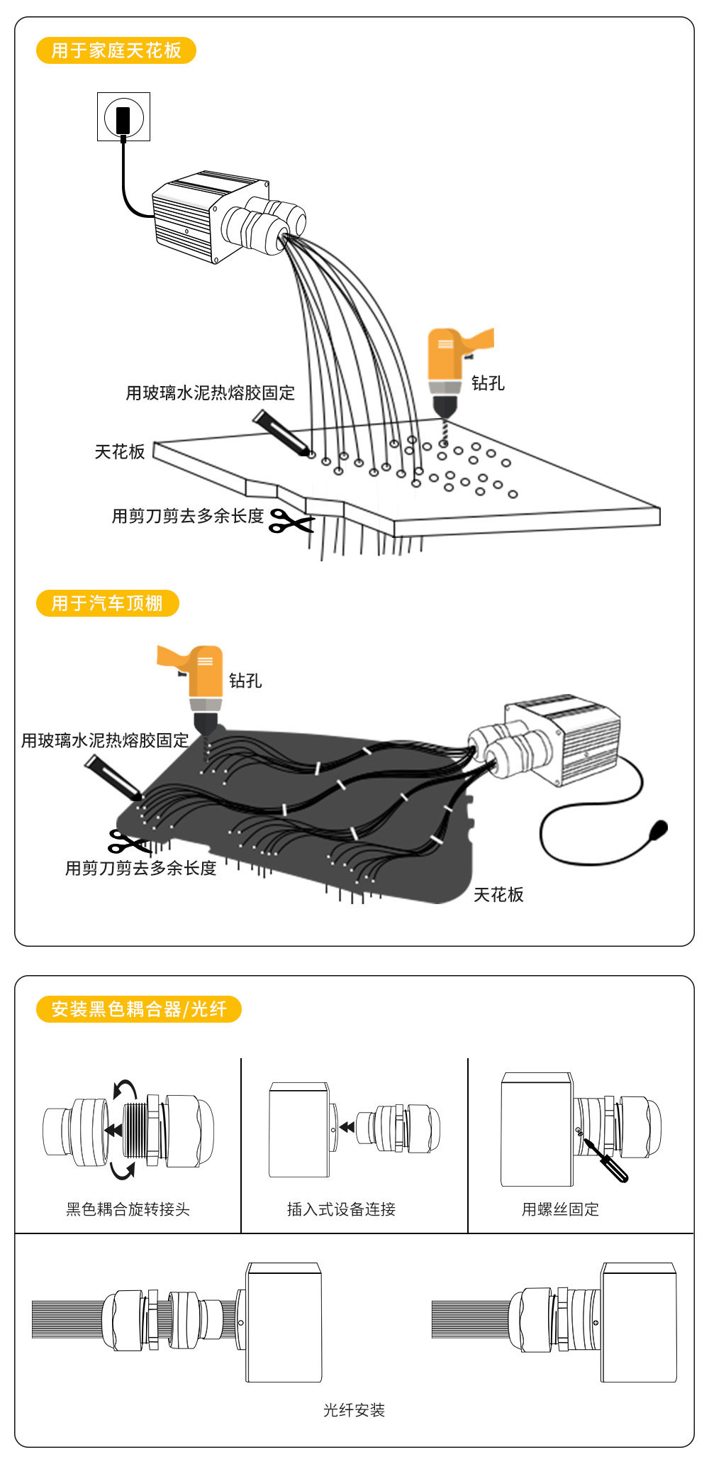 Новый двухцветный двухголовочный светодиодный источник света для оптоволокна, устройство для создания эффекта звездного неба в доме и отелях