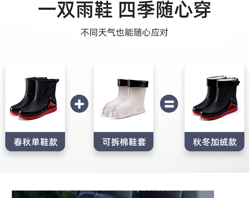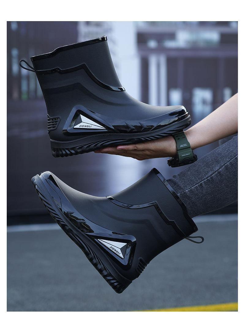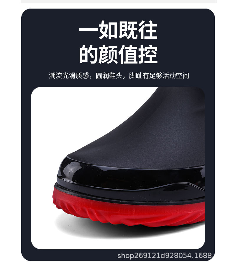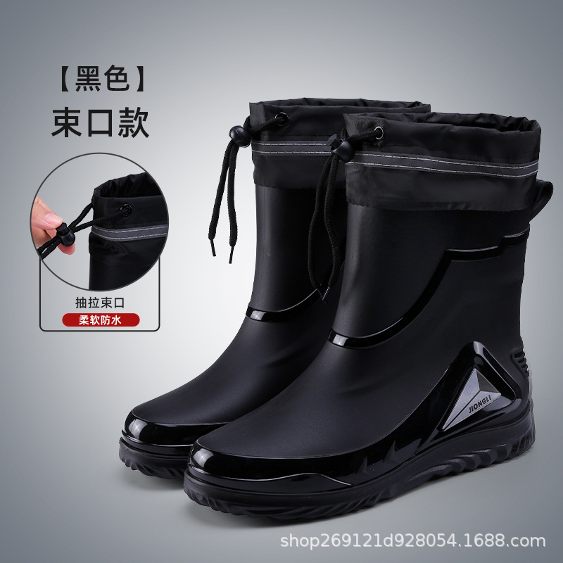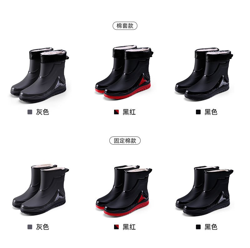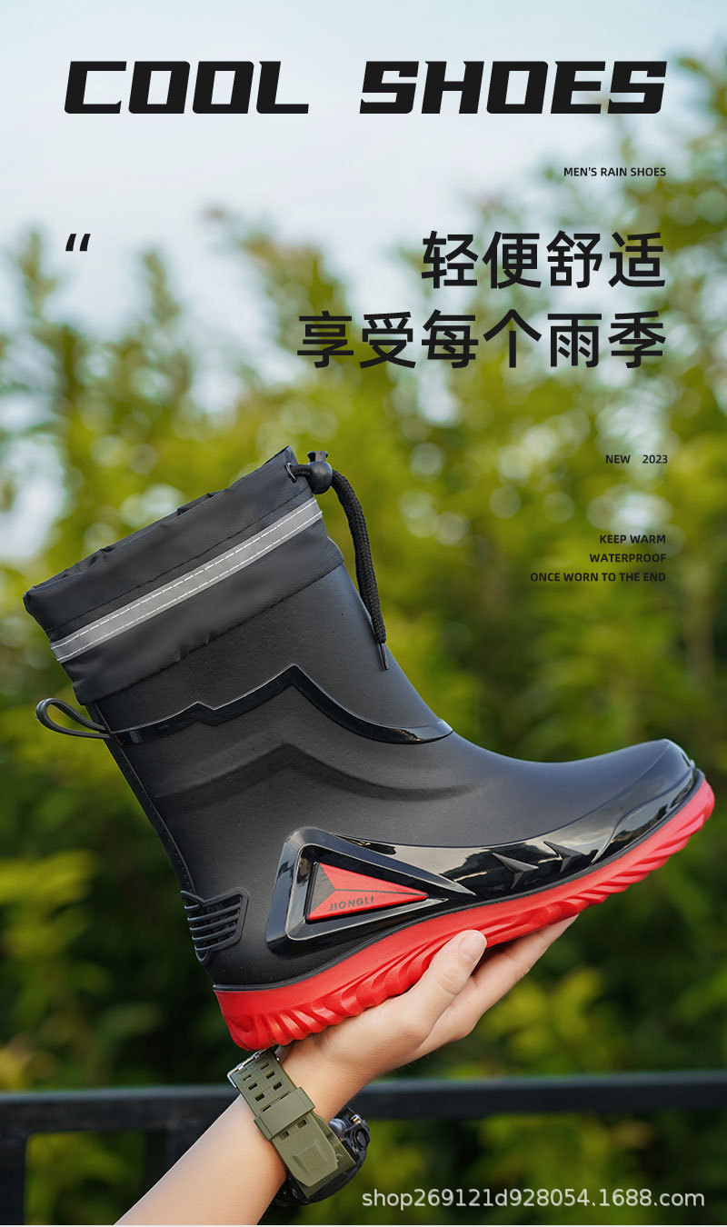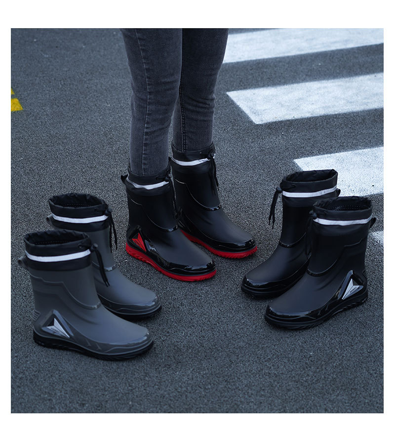 Мужские непромокаемые сапоги для внешней торговли с корейской флисовой подкладкой, светоотражающими полосками, водонепроницаемые, нескользящие, модные модные уличные короткие водные туфли с зауженным отверстием.