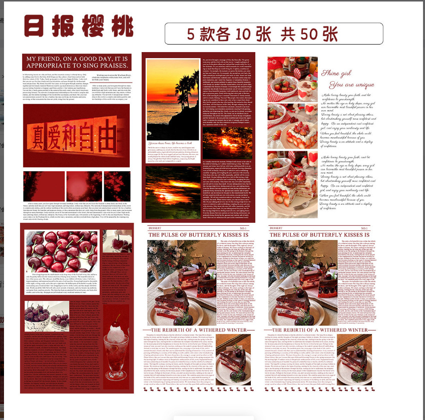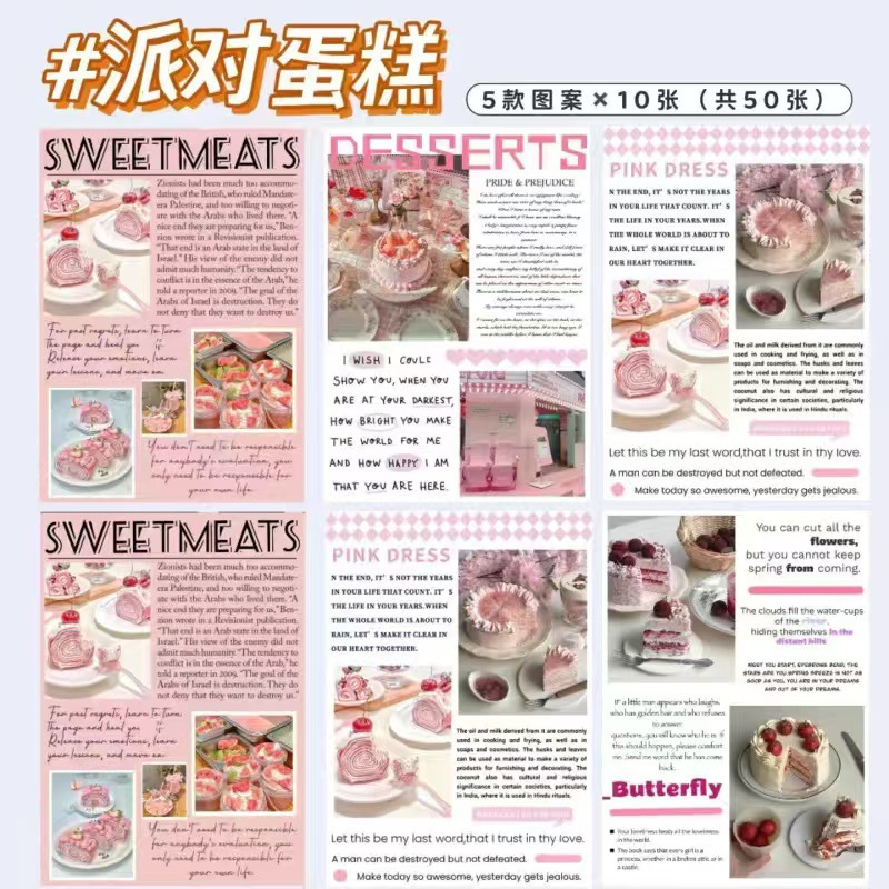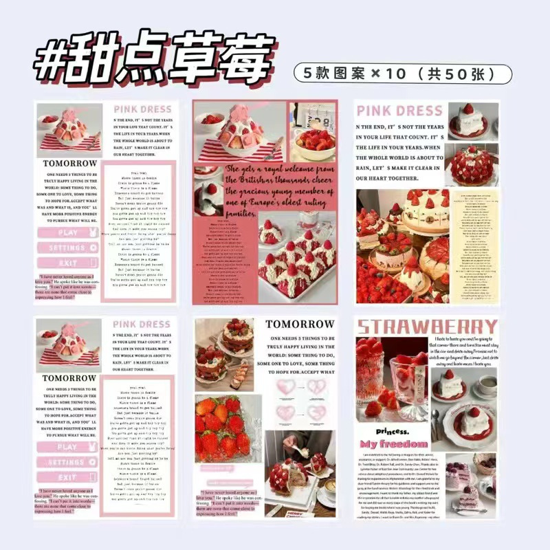 Десертная клубника 50 листов/уп.; Мультяшный кролик, 50 листов/упак.; Торты для вечеринок 50 листов/упаковка; Романтическая Сакура 50 листов/упаковка; Forest серии 50 листов/упаковка; Ocean серии 50 листов/упаковка; Бесплатная коллекция-красный 50 листов/упаковка; Бесплатная коллекция-синий, 50 листов/упак.
