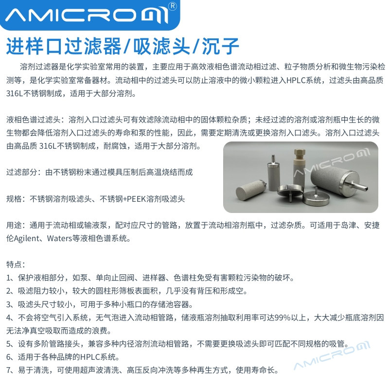 Цилиндрический тип Φ7,3×20,6 мм, 20 мкм, подключается к трубе с наружным диаметром 1/8 дюйма AMLC691; Цилиндрический тип Φ8×8 мм, 10 мкм, подключается к трубке с внутренним диаметром 4,5 мм (AMLC693); Цилиндрический тип Φ12,5×25 мм, 2 мкм, подключается к трубке с внутренним диаметром 1/16" (AMLC636); Цилиндрический тип Φ12,5×25 мм, 10 мкм, подключается к трубке с внутренним диаметром 1/16" (AMLC131); Цилиндрический тип Φ12,5×25 мм, 20 мкм, подключается к трубке с внутренним диаметром 1/16" (AMLC638); Цилиндрический тип Φ12,5×25 мм, 2 мкм, подключается к трубке с внутренним диаметром 1/8" (AMLC639); Цилиндрический тип Φ12,5×25 мм, 10 мкм, подключается к трубке с внутренним диаметром 1/8" (AMLC641); Цилиндрический тип Φ12,5×25 мм, 20 мкм, подключается к трубке с внутренним диаметром 1/8" (AMLC642); Цилиндрический тип Φ25×40 мм, 2 мкм, подключается к трубке с внутренним диаметром 4,35 мм (AMLC686); Цилиндрический тип Φ25×40 мм, 10 мкм, подключается к трубке с внутренним диаметром 4,35 мм (AMLC687); Цилиндрический тип Φ25×40 мм, 20 мкм, подключается к трубке с внутренним диаметром 4,35 мм (AMLC688); Цилиндрический тип Φ25×40 мм, 2 мкм, подключается к трубке с внутренним диаметром 1/4" (AMLC675); Цилиндрический тип Φ25×40 мм, 10 мкм, подключается к трубке с внутренним диаметром 1/4" (AMLC677); Цилиндрический тип Φ25×40 мм, 20 мкм, подключается к трубке с внутренним диаметром 1/4" (AMLC678); Плоский тип Φ20 мм, 2 мкм, подключается к трубке с внутренним диаметром 1/16" (AMLC651); Плоский тип Φ20 мм, 10 мкм, подключается к трубке с внутренним диаметром 1/16" (AMLC653); Плоский тип Φ20 мм, 20 мкм, подключается к трубке с внутренним диаметром 1/16" (AMLC654); Плоский тип Φ20 мм, 2 мкм, подключается к трубке с внутренним диаметром 1/8" (AMLC655); Плоский тип Φ20 мм, 10 мкм, подключается к трубке с внутренним диаметром 1/8" (AMLC657); Плоский тип Φ20 мм, 20 мкм, подключается к трубке с внутренним диаметром 1/8" (AMLC658); Цилиндрический PK тип Φ12.5×25 мм, 2 мкм, подключается к трубке с наружным диаметром 1/8" (AMLC663); Цилиндрический PK тип Φ12.5×25 мм, 10 мкм, подключается к трубке с внешним диаметром 1/8" (AMLC665); Цилиндрический PK тип Φ12.5×25 мм, 20 мкм, подключается к трубке с внешним диаметром 1/8" (AMLC666); Цилиндрический PK тип Φ12.5×25 мм, 50 мкм, подключается к трубке с внешним диаметром 1/8" (AMLC704)