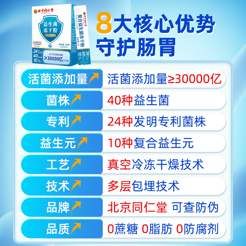 Пекинский пробиотик Tongrentang для желудочно-кишечного тракта, лиофилизированный порошок, без сахарозы, пробиотик для детей, людей среднего и пожилого возраста, можно обсуждать в больших количествах.