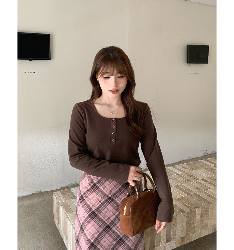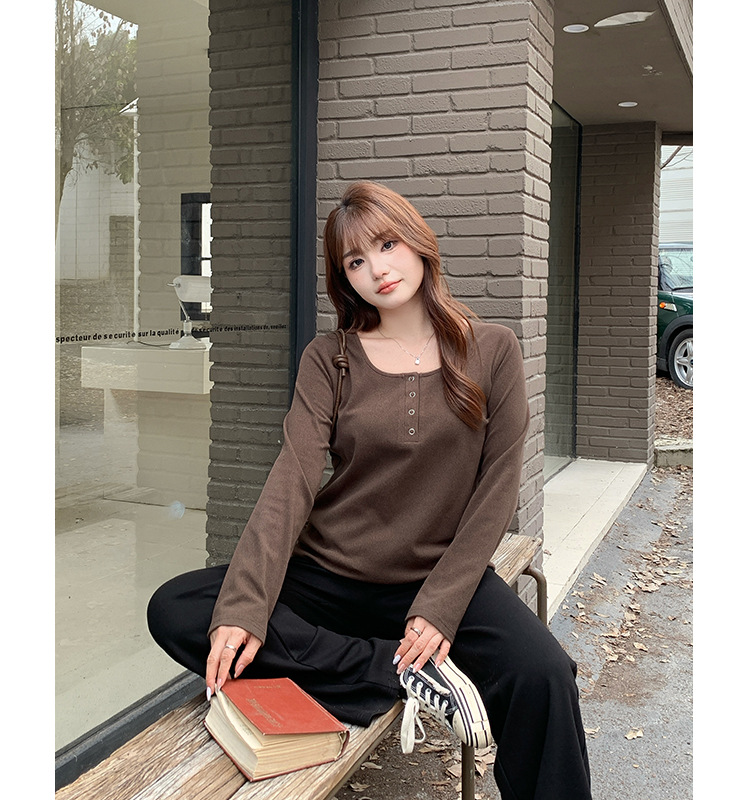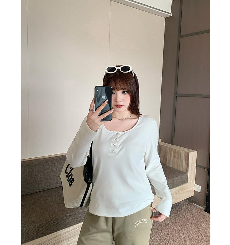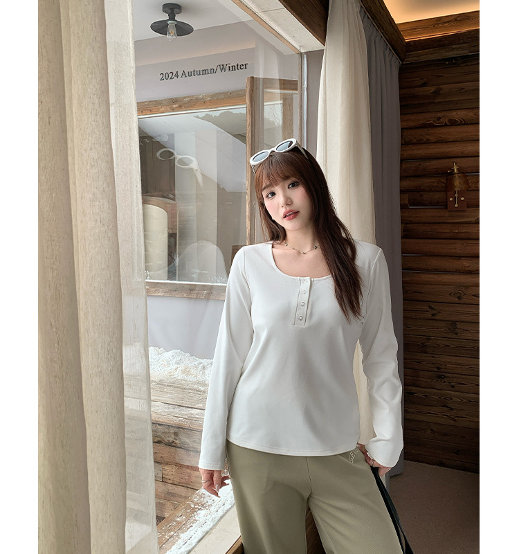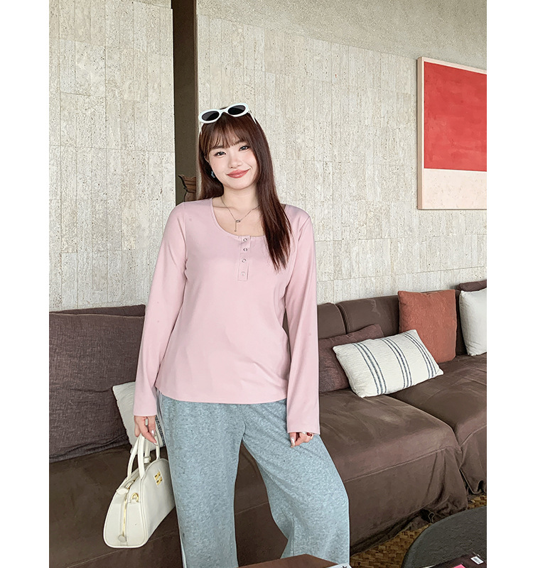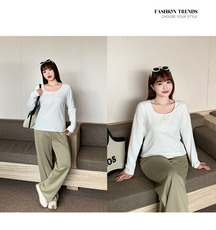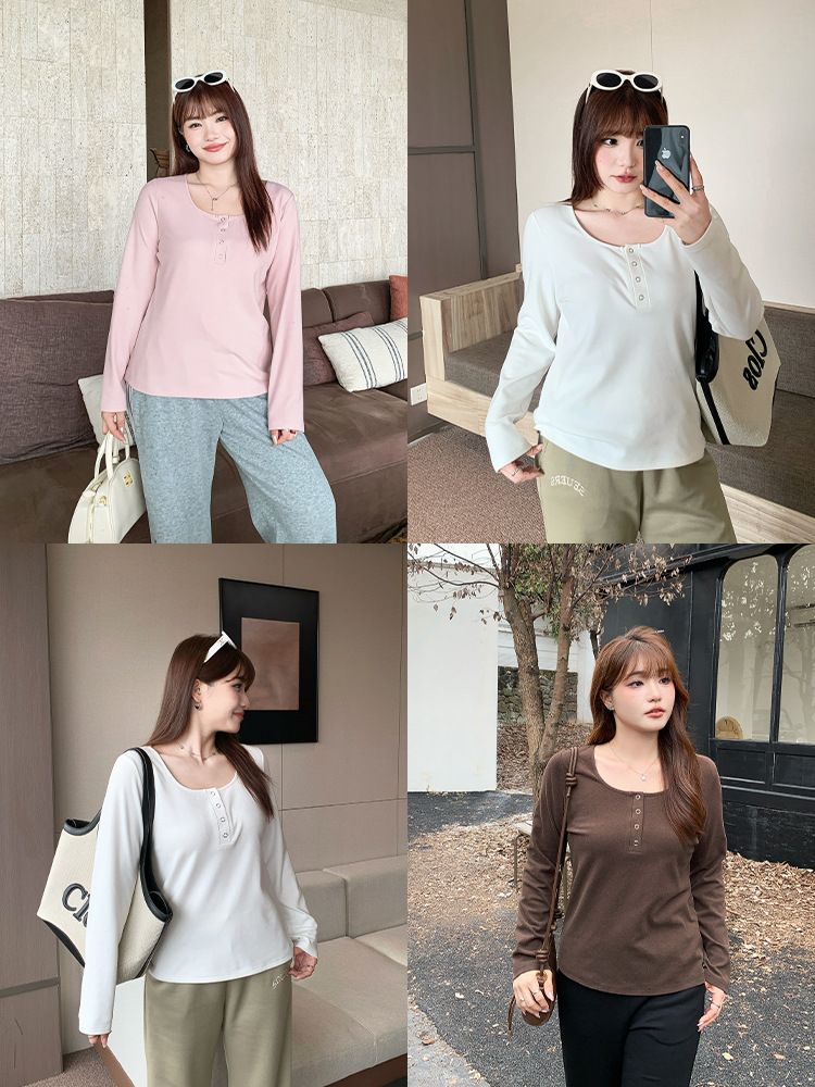 Многоцветный мягкий двусторонний термо-топ крупной вязки с широким U-образным вырезом для женщин, весенний сезон, базовая трикотажная рубашка больших размеров для полных женщин 63567
