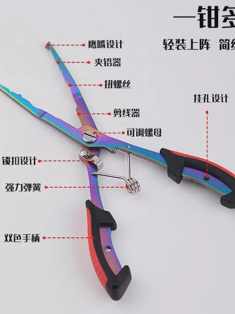 Многофункциональные удлиненные плоскогубцы для приманок с орлиным клювом, плоскогубцы для приманок с двухцветной ручкой, ножницы для приманок, рыболовные плоскогубцы, плоскогубцы для приманок