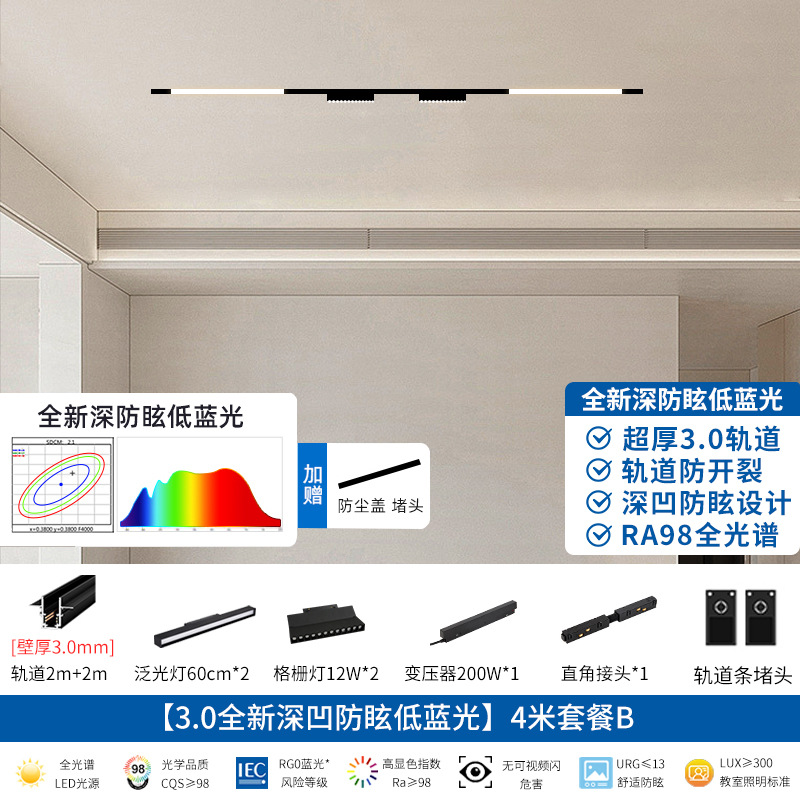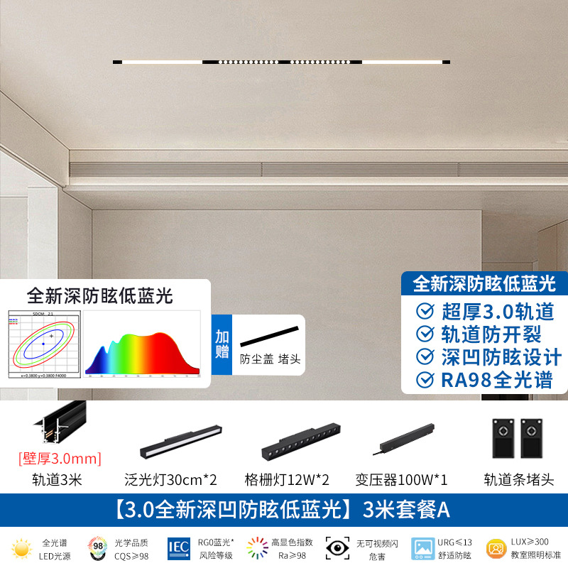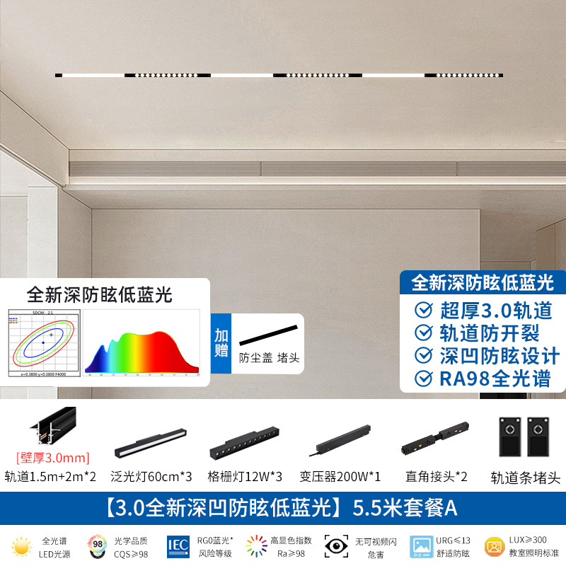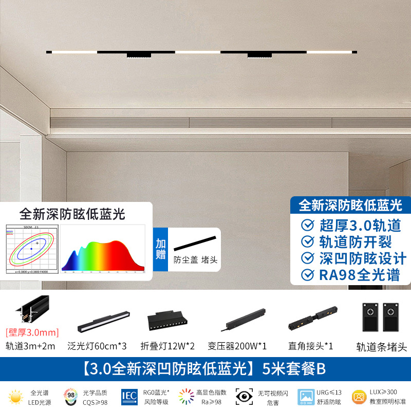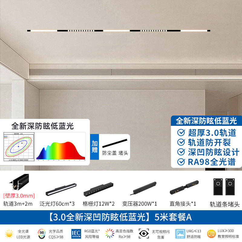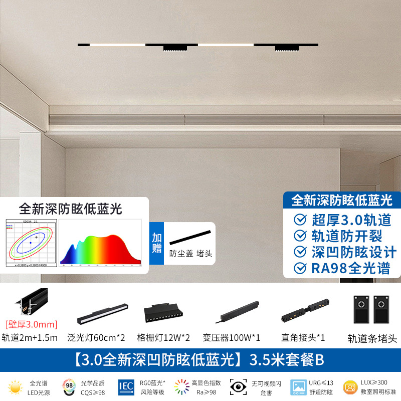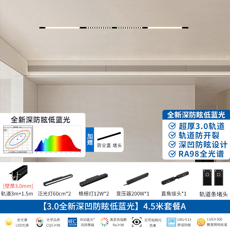 3.0 Интеллектуальный магнитный трековый светильник против растрескивания Встроенный высокий цвет и глубокий антибликовый полный спектр светодиодный свет без основного освещения